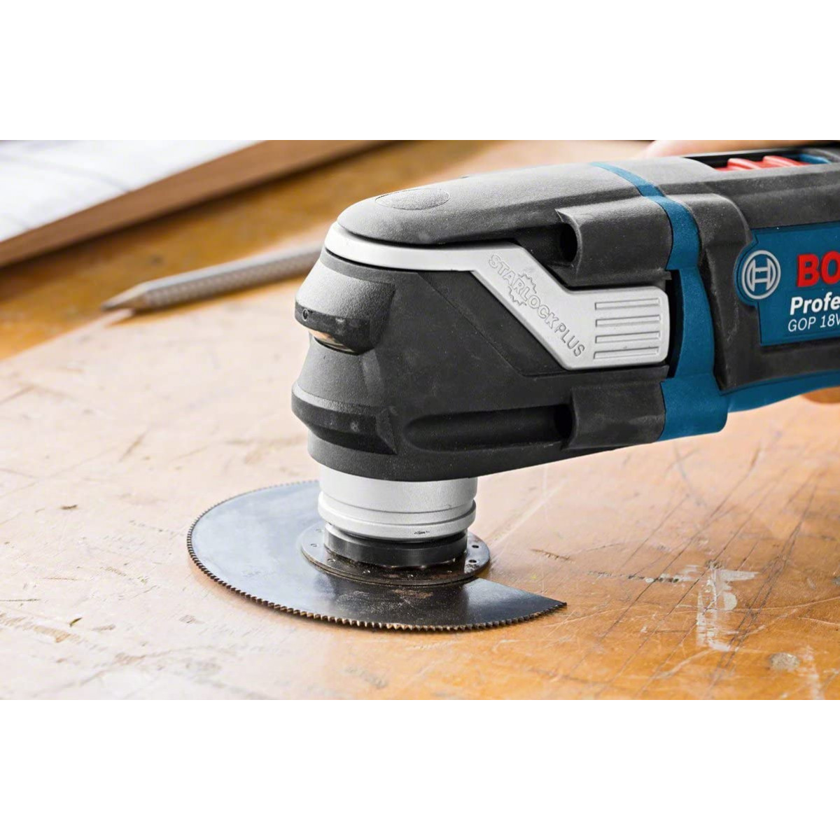 L’utensile multifunzione a batteria GOP 18V-28 Professional è un utensile versatile e potente della categoria StarlockPlus Bosch. La sua superiore interfaccia Starlock, dotata di geometria tridimensionale ottimizzata senza gioco tra macchina ed accessori, garantisce la più elevata trasmissione di forza possibile per un avanzamento del lavoro più rapido. L’utensile multifunzione dispone inoltre di luce a LED che illumina le aree di lavoro e migliora la visibilità anche al buio. Inoltre, la funzione Snap In consente una rapida e semplice sostituzione degli accessori.