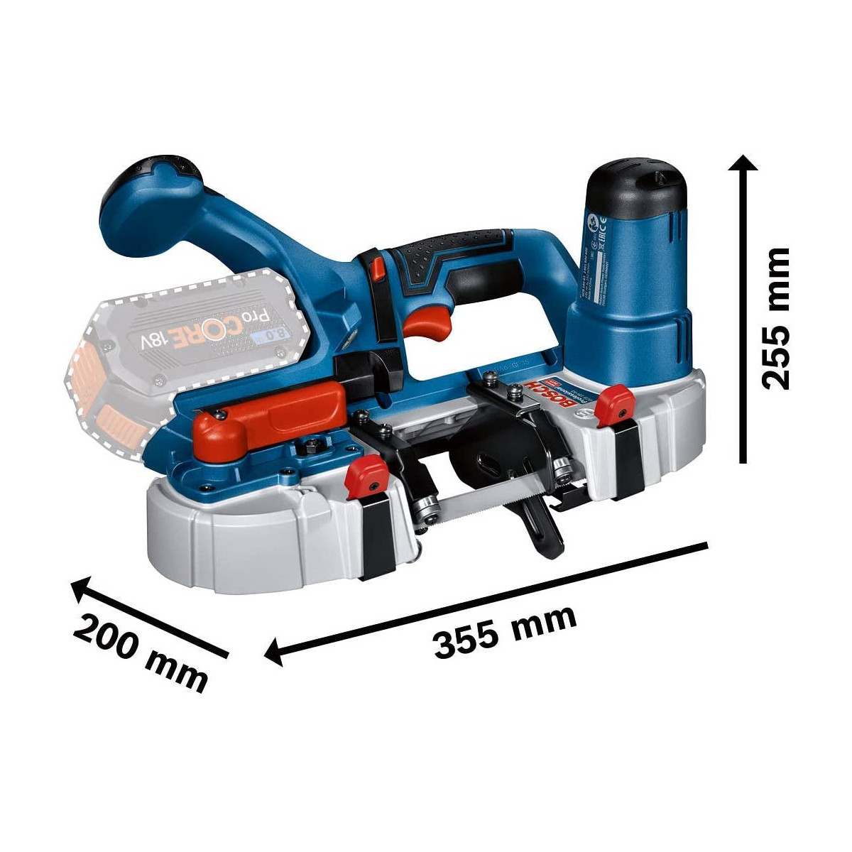 Bosch GCB 18V-63 - Sega a Nastro 18V, Profondità Taglio 63,5 mm, L-Boxx, Senza Batteria e Caricabatt.