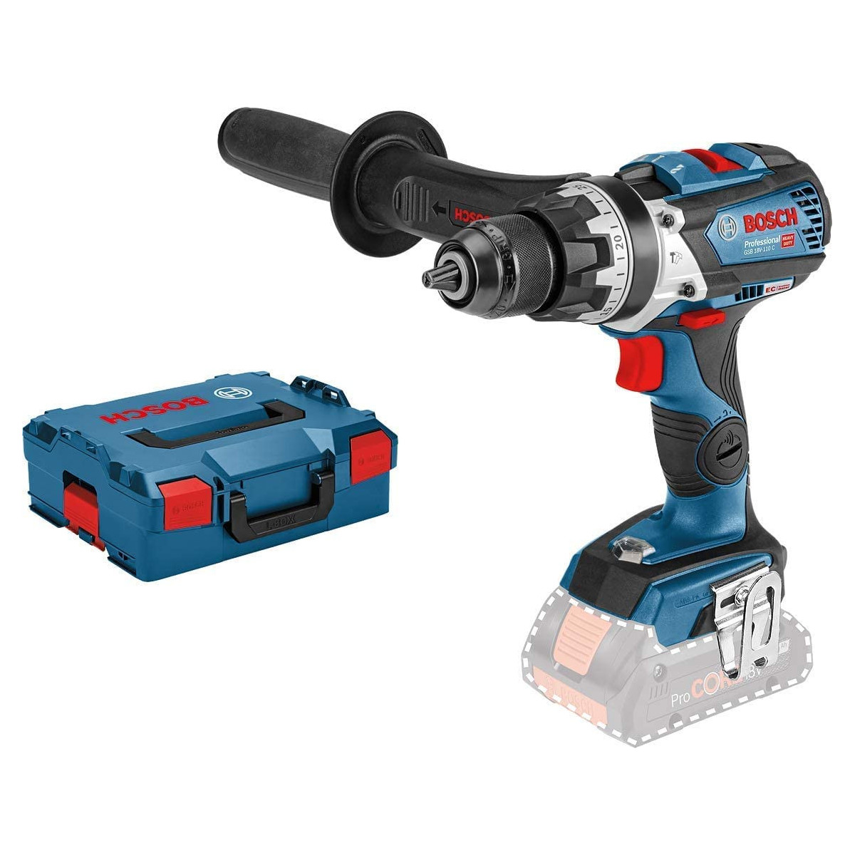 Bosch GSB 18 V-110 C - Trapano Avvitatore con Percussione 18V, 47-110Nm, L-Boxx, Senza Batteria e Caricabatt.