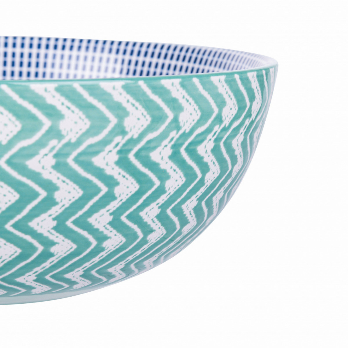 Insalatiere dai motivi geometrici, e con accostamenti inediti di colori e pattern. Le stampe all'interno si differenziano da quelle all'esterno, regalando un tocco etnico alla tavola, ma anche al momento del pasto. Sono perfette sulle apparecchiate più moderne e chic.