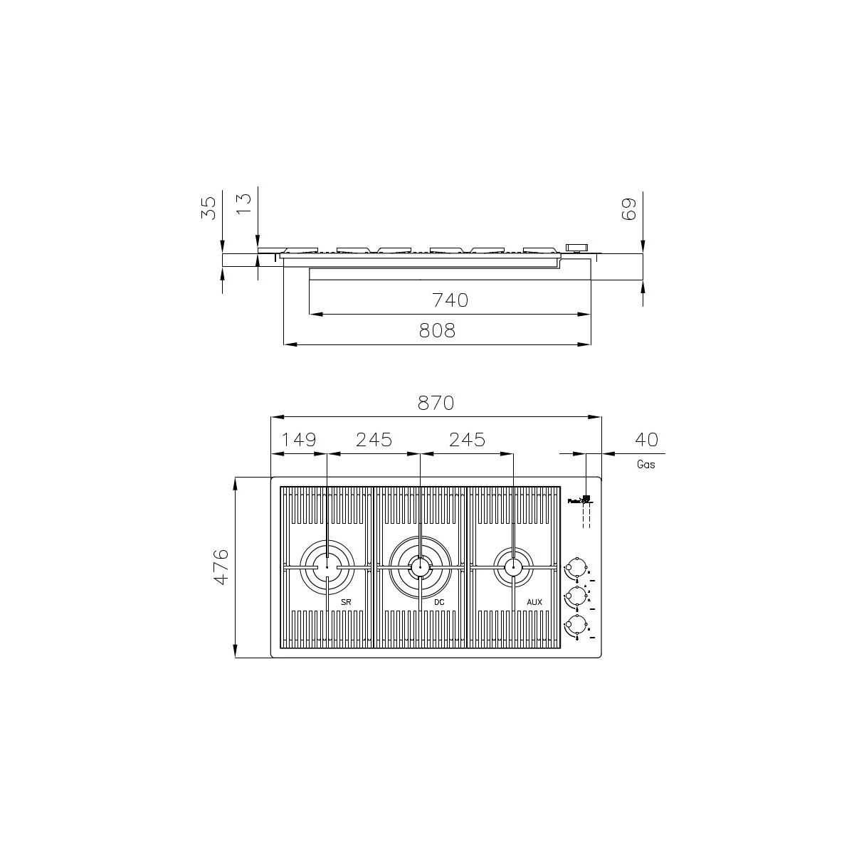 Foster 7680 006 - Piano Milanello a Gas, 3 Fuochi, 87 cm, Gun Metal