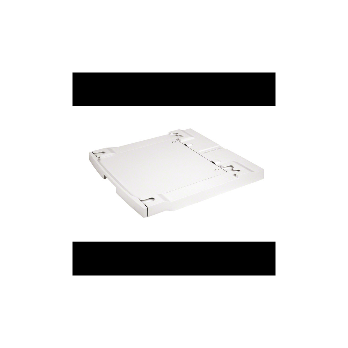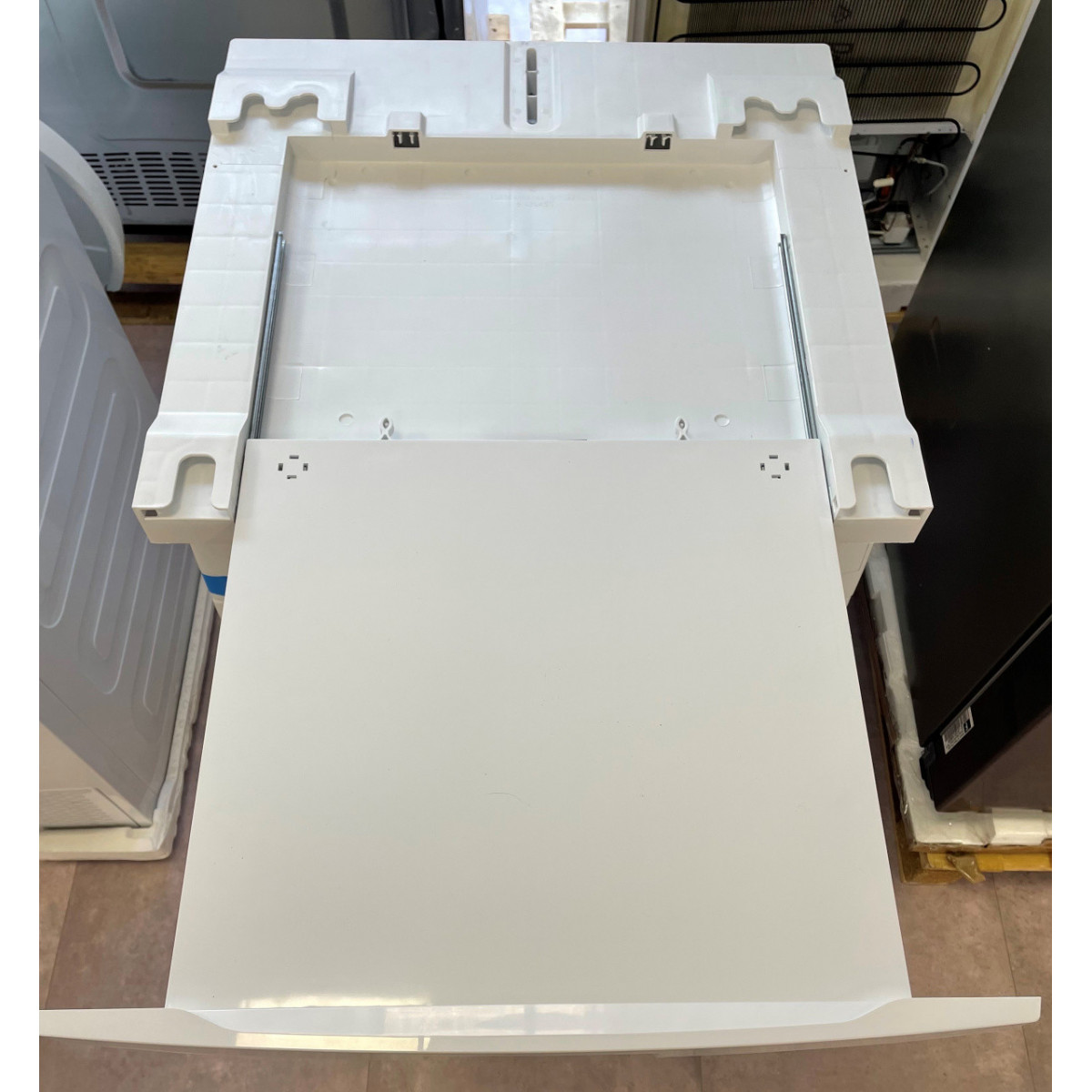 Kit di congiunzione con ripiano estraibile per lavatrici con profondità compresa tra 54 e 60 cm. Permette di installare l'asciugabiancheria sopra la lavabiancheria Non richiede né fori né complesse operazioni di assemblaggio E' dotato di ripiano estraibile Il kit è adatto a lavatrici e dryer con profondità compresa tra 54 e 60 cm