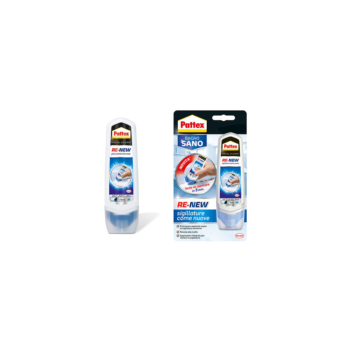 Pattex Re-new rinnova e sbianca le fughe tra le piastrelle. Non è necessario rimuovere le sigillature esistenti. Packaging innovativo: bottiglia ergonomica con un applicatore flessibile auto-lisciante. Facile da regolare: ripassare il prodotto sopra le sigillature per migliorare il risultato grazie all'applicatore auto-lisciante. In tubetto da 100ml.