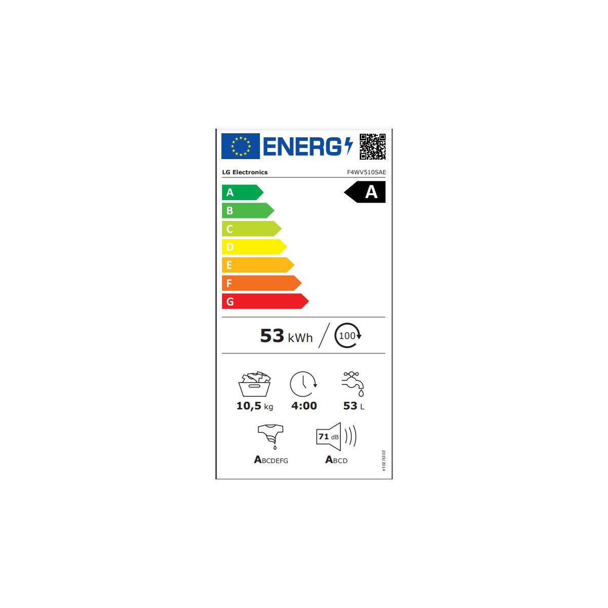 - Classe di efficienza energetica (da A a G) A Capacità di carico (Kg) 10.5