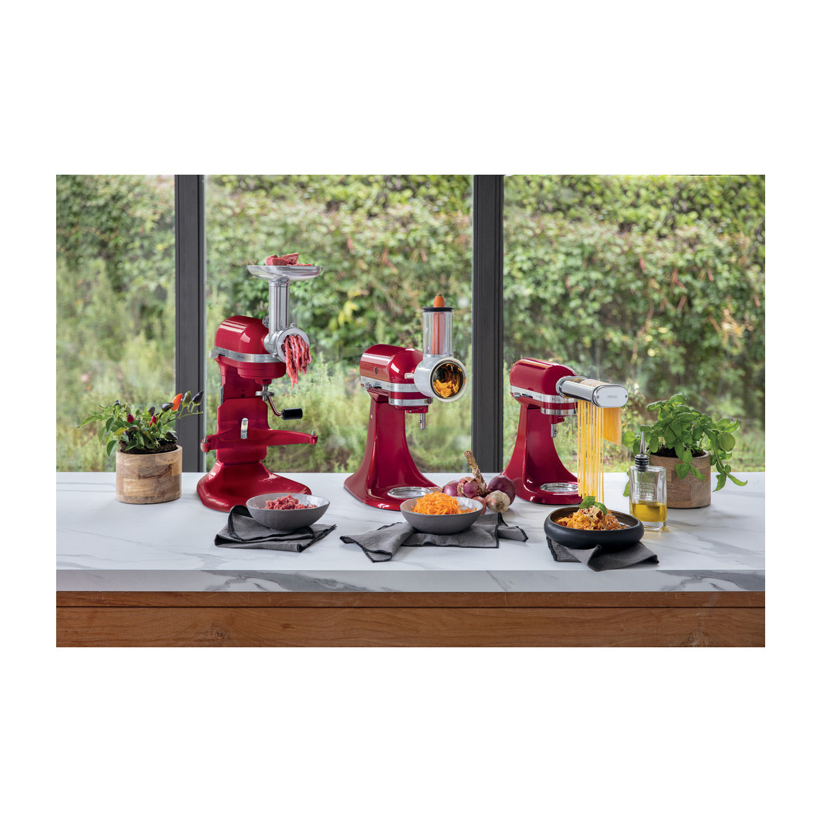 È disponibile un'ampia gamma di accessori, opzionali e non, che si collegano tutti all'attacco multifunzione singolo. Questi accessori consentono di macinare la carne, affettare le verdure, arrotolare o tagliare la pasta, spremere, tritare e lavorare gli ingredienti, trasformando la mini planetaria in un vero e proprio strumento di lavoro. L'attacco è compatibile con tutti gli accessori per planetaria classica attualmente disponibili.