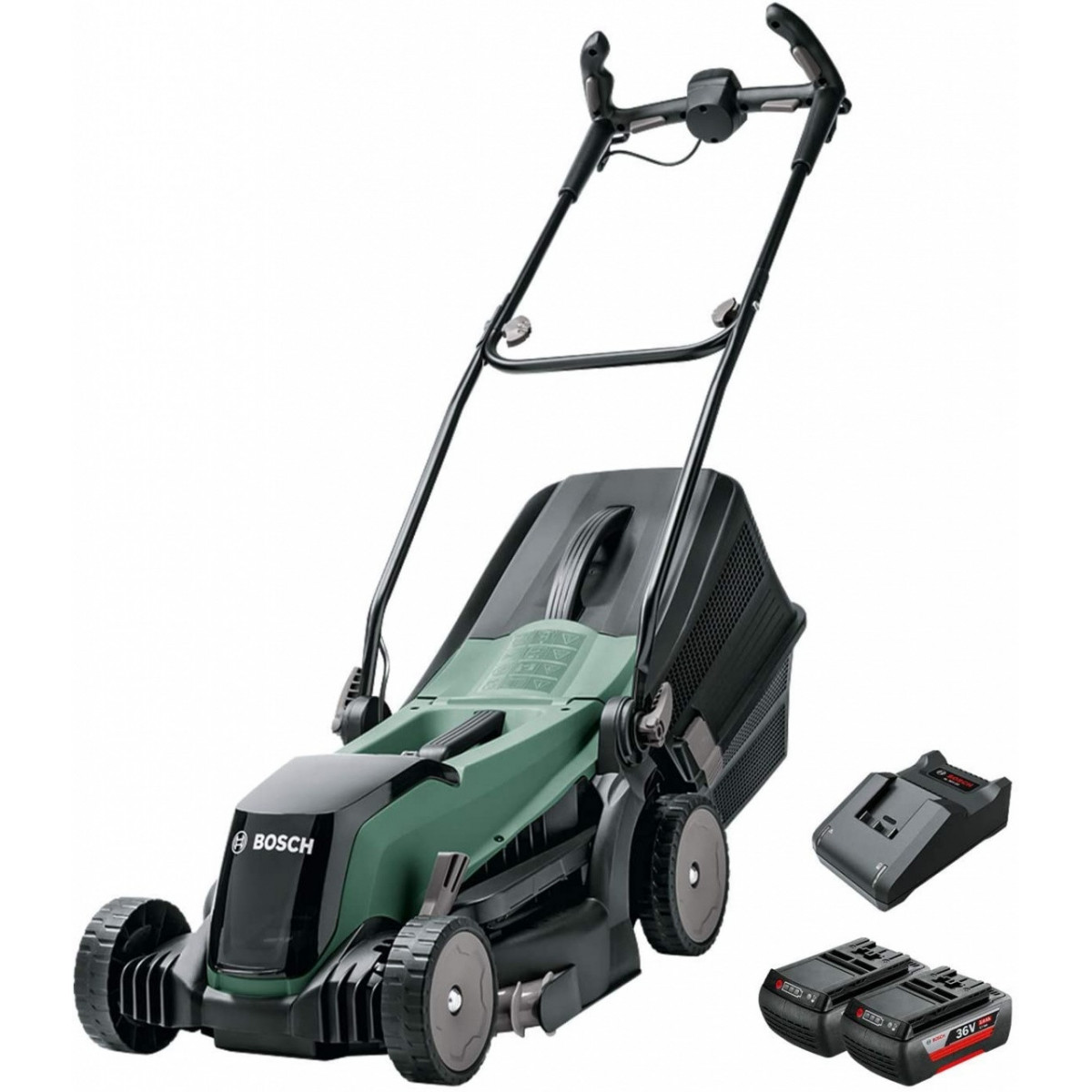 Bosch EasyRotak 36-550 - Rasaerba 36V, 4,0 Ah, Ø Taglio 38 cm, Lunghezza Lama 37 cm, Altezza Taglio 20-70mm, Batt e Carica Incl