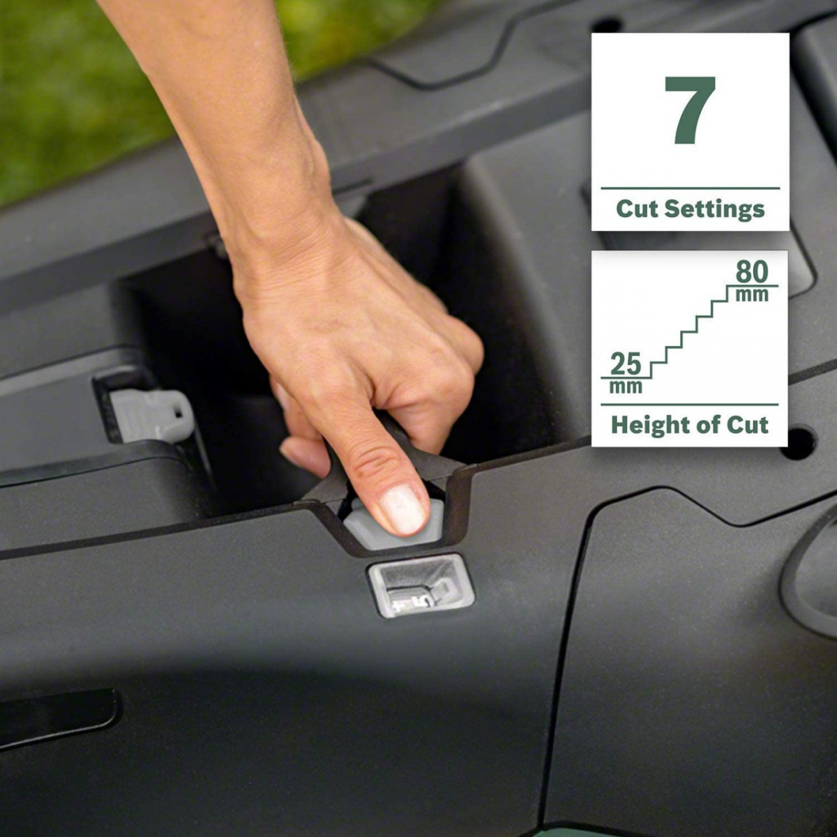 Questo rasaerba a filo offre eccellenti risultati, con un taglio molto pratico e silenzioso. La tecnologia ProSilence riduce la rumorosità fino al 30% e sopprime i suoni più sgradevoli, grazie all’acustica ottimizzata. L’altezza di lavoro di AdvancedRotak si regola semplicemente premendo un tasto, selezionando uno dei sette livelli di taglio disponibili, da 25 mm a 80 mm: così, potrai iniziare a tagliare immediatamente. Oltre a sfalciare il prato, la lama LeafCollect taglia l’erba ed è utilizzabile per raccogliere il fogliame.