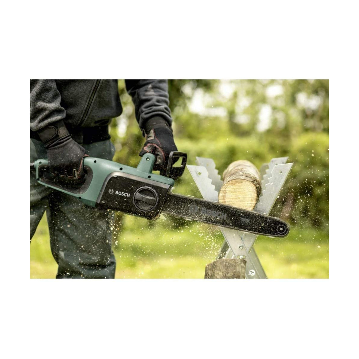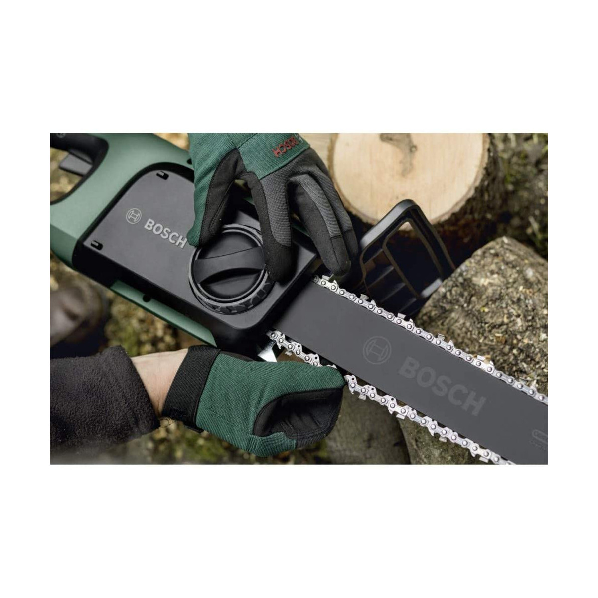 Sega a catena UniversalChain, a filo, di soli 4,2 kg di peso e dal design ergonomico, per la massima praticità. Il potente motore da 1800 Watt e la velocità della catena di 12 m/s assicurano un taglio rapido. Il pratico sistema SDS Bosch consente un tensionamento ed una manutenzione della catena semplici e senza attrezzi. L’ampio serbatoio laterale per l’olio, dotato di un pratico tappo con filo, permette di rifornire con facilità il sistema di lubrificazione automatica della catena. Il robusto freno anti rimbalzo garantisce il completo arresto della catena, per una maggiore sicurezza. Questa sega a catena, maneggevole e facile da usare, è ideale per tagliare ceppi di legna, rami ed alberi medio-piccoli.