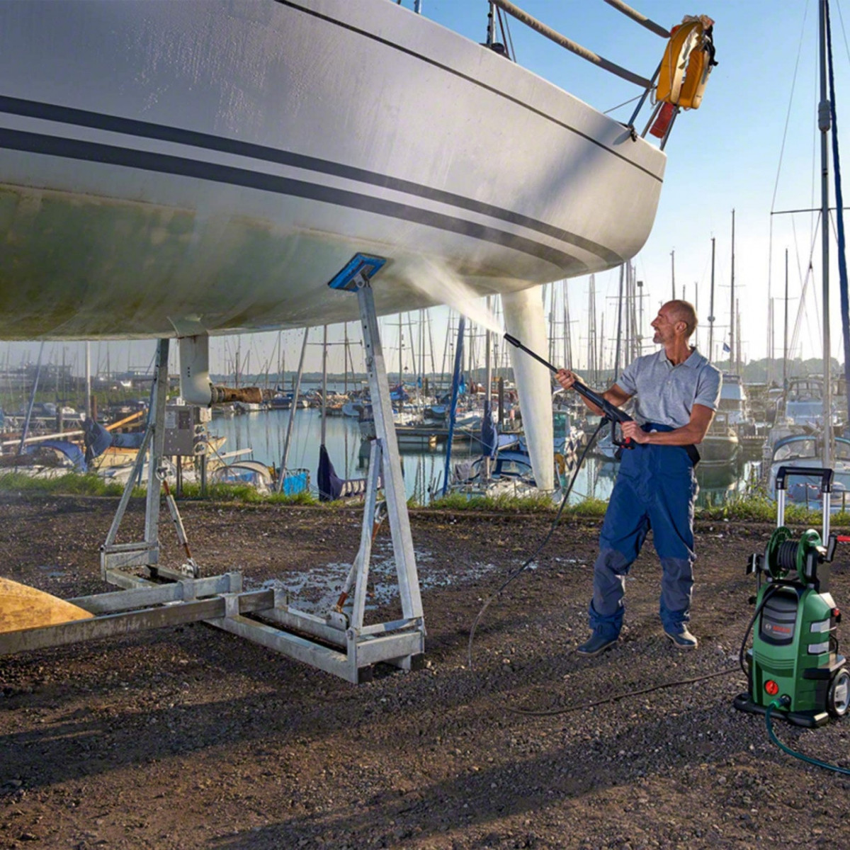 - Preparazione agevole, grazie all’avvolgitubo per idropulitrice ed agli attacchi ad innesto rapido