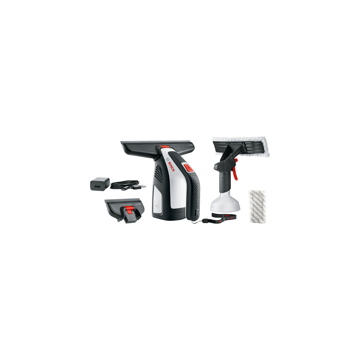 Bosch GlassVAC - Aspiragocce 3,6V, 2 Testine 133-266mm, Spruzzatore 2 Panni Microfibra, Cavo USB