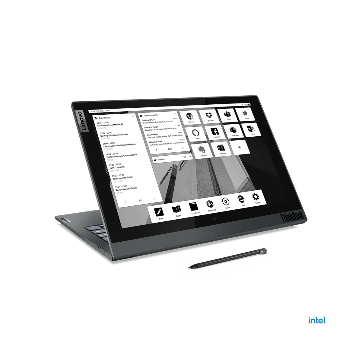 Lenovo ThinkBook Plus G2 ITG. Tipo di prodotto: Ibrido (2 in 1), Fattore di forma: Clamshell. Famiglia processore: Intel® Core™ i5, Modello del processore: i5-1130G7, Frequenza del processore: 1,8 GHz. Dimensioni schermo: 33,8 cm (13.3"), Risoluzione del display: 2560 x 1600 Pixel, Touch screen. RAM installata: 16 GB, Tipo di RAM: LPDDR4x-SDRAM. Capacità totale di archiviazione: 512 GB, Supporto di memoria: SSD. Modello scheda grafica integrata: Intel Iris Xe Graphics. Sistema operativo incluso: Windows 11 Pro. Colore del prodotto: Grigio