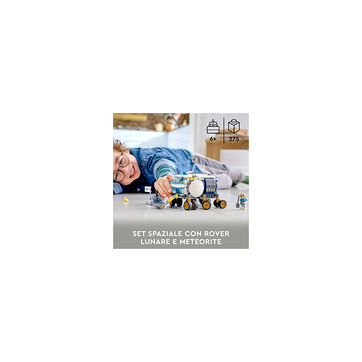 Regala ai giovani appassionati di missioni nello spazio questo modello spaziale della NASA: LEGO City Rover Lunare (60348). Il rover di questo fantastico set LEGO dedicato allo spazio è dotato di 12 ruote omnidirezionali, 2 bracci di ispezione e spazio per contenere le 3 minifigure degli astronauti. Include inoltre degli strumenti e degli utensili di lavoro, più l'ambientazione di un meteorite per creare nuove storie di fantasia ambientate nella base lunare della NASA. Il modello di rover spaziale può essere combinato con altri set LEGO Space per un divertimento senza fine.