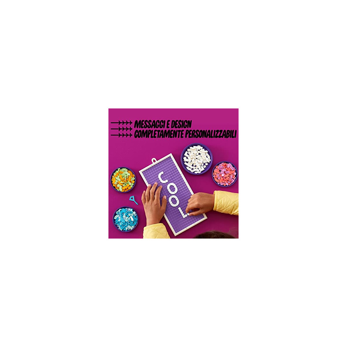 Vuoi un giocattolo fai da te per esprimere completamente te stesso? Scopri LEGO DOTS Bacheca Messaggi (41951), la lavagna personalizzabile per bambini! Rendi unica la porta della tua camera grazie ai messaggi personalizzati che componi sulla bacheca. Un set pensato per stimolare la creatività artistica dei più piccoli attraverso colorate decorazioni per la camera dei bambini.