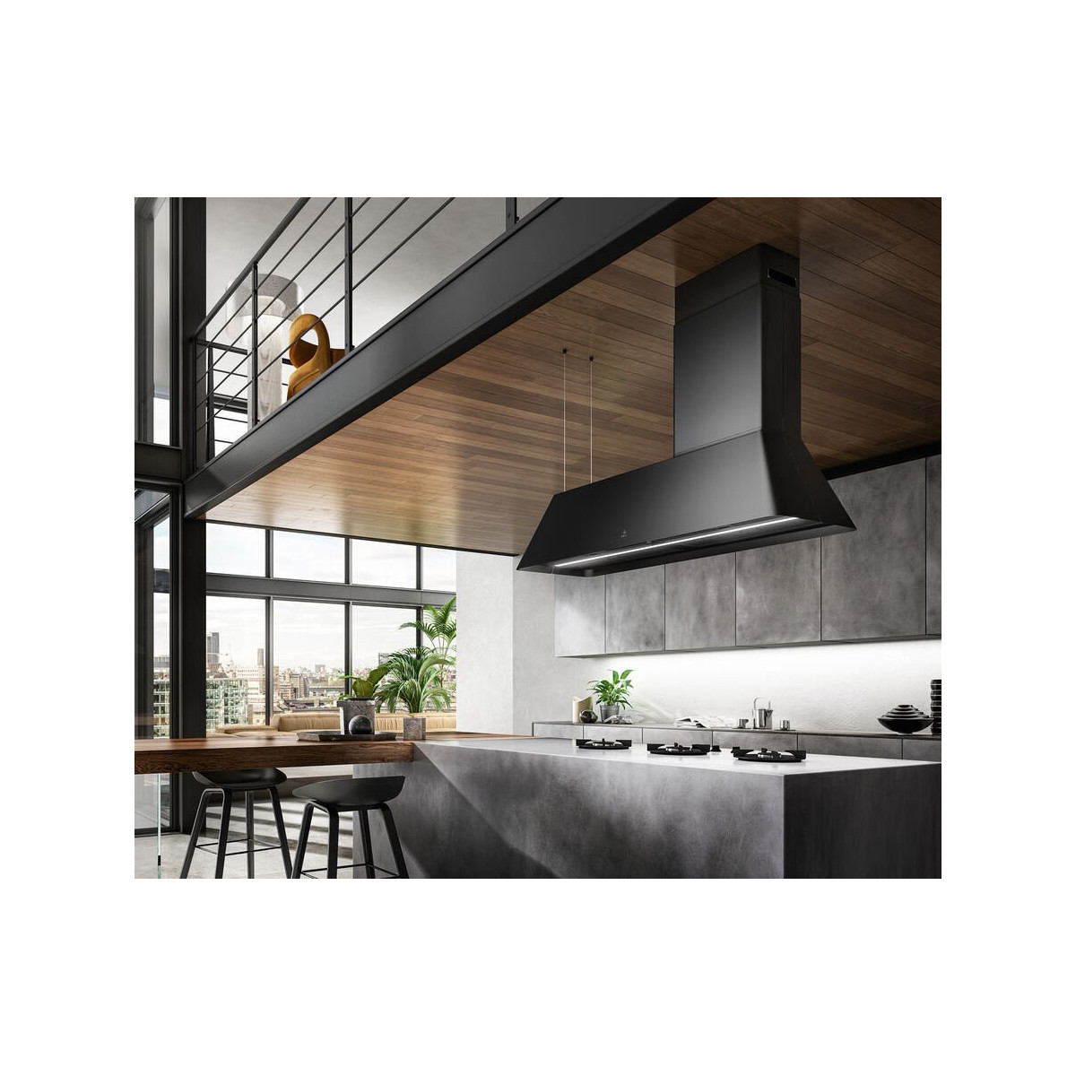 Elica PRF0171- Cappa a Isola Sospesa, 120 cm, Purificatore D'Aria, Nero, effetto soft touch Ikona Maxxi Pure, Classe A