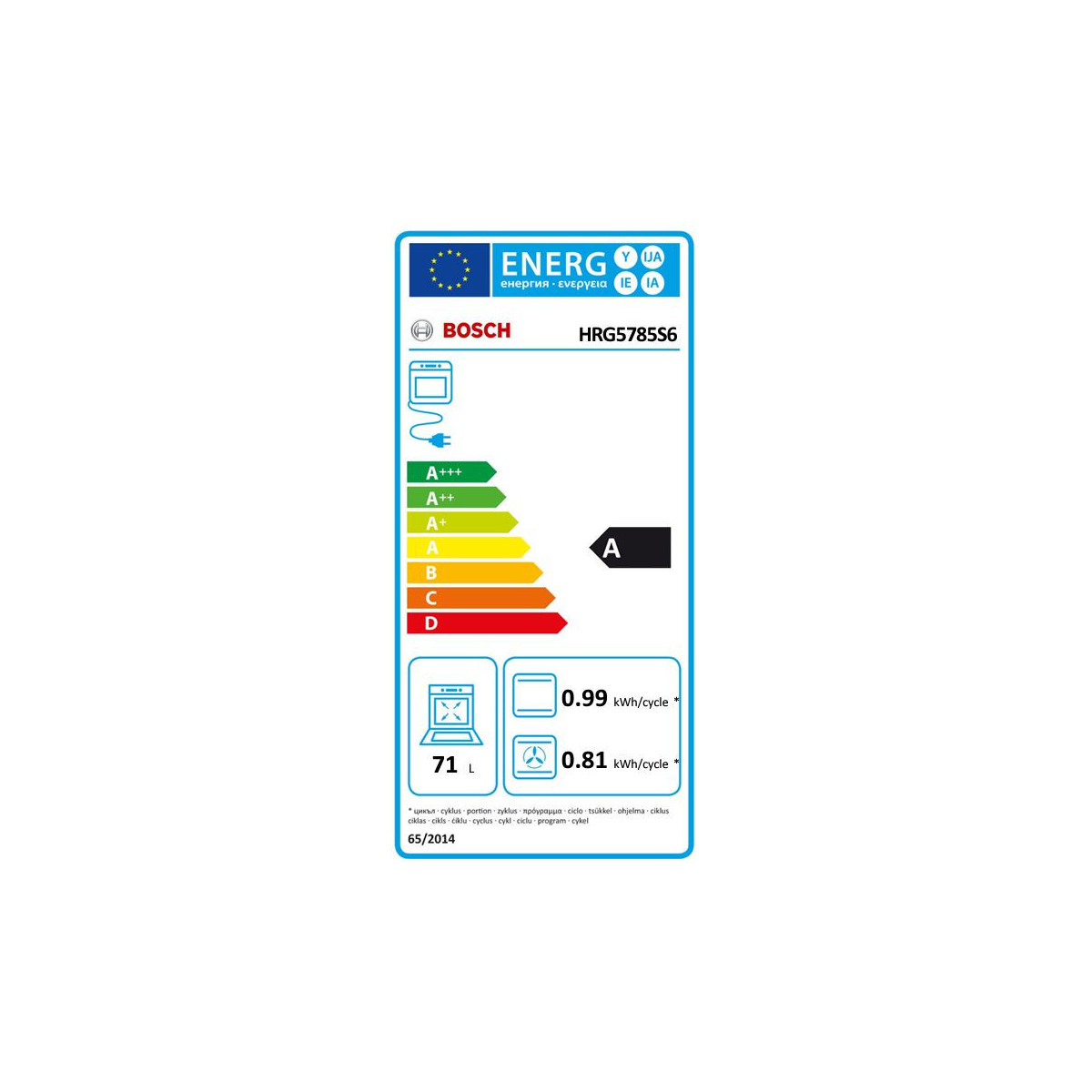 | Capacità netta del forno | 71 L |