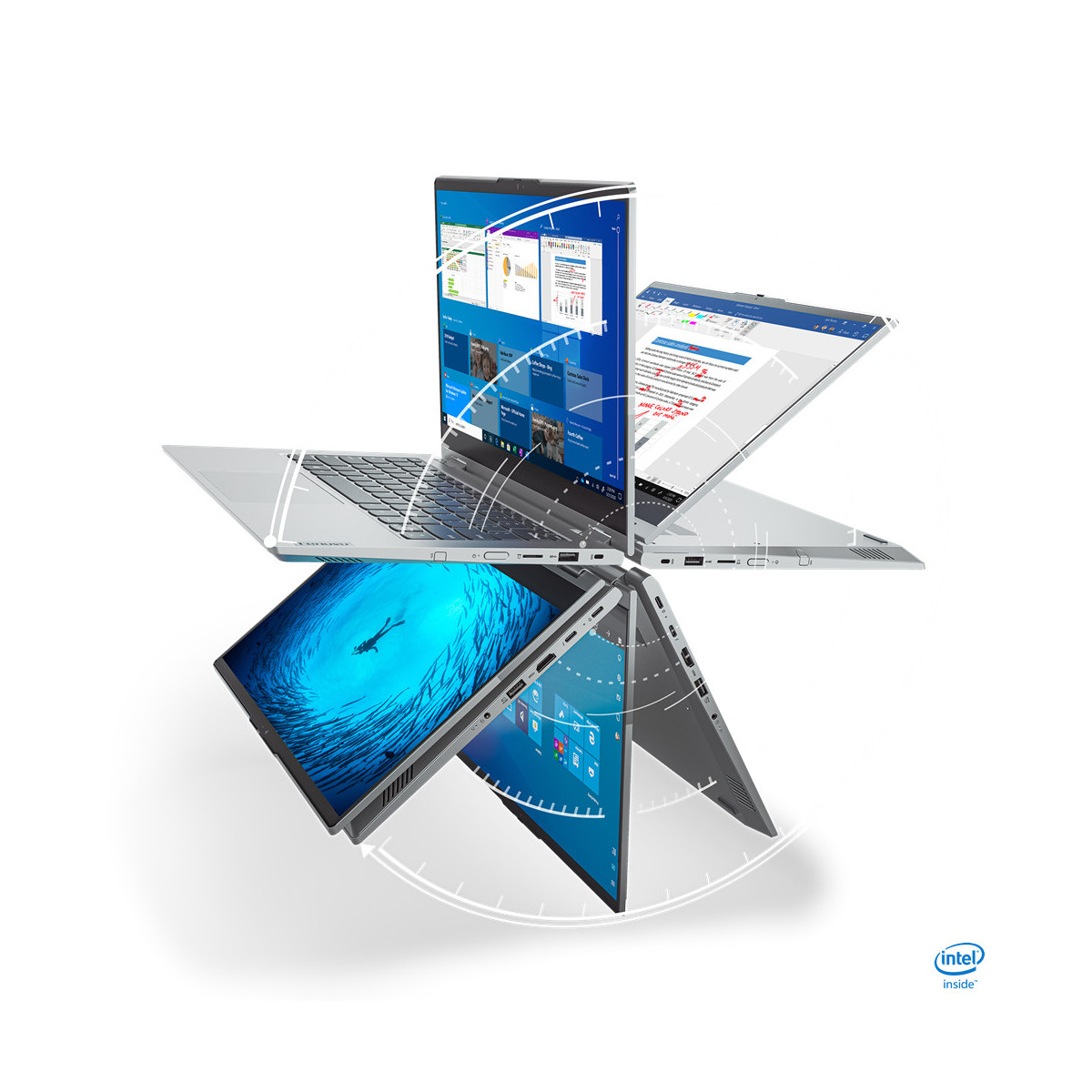 ThinkBook 14s Yoga da 14" è un notebook 2-in-1 flessibile e potente, perfetto per le piccole aziende. Sottile, leggero e potente, è di facile uso in quattro modalità: notebook, tablet, stand o tent. Inoltre, offre opzioni smart, come Modern Standby, e app che si aprono automaticamente, in determinate modalità, quando estrai la penna integrata.