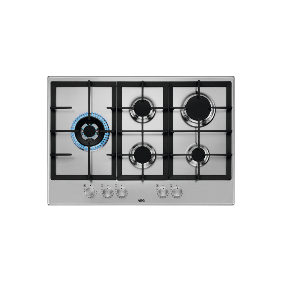 Aeg HGB75520SM - Piano Cottura a Gas Slim Profile, 75 cm, 5 Fuochi, Acciaio Inox