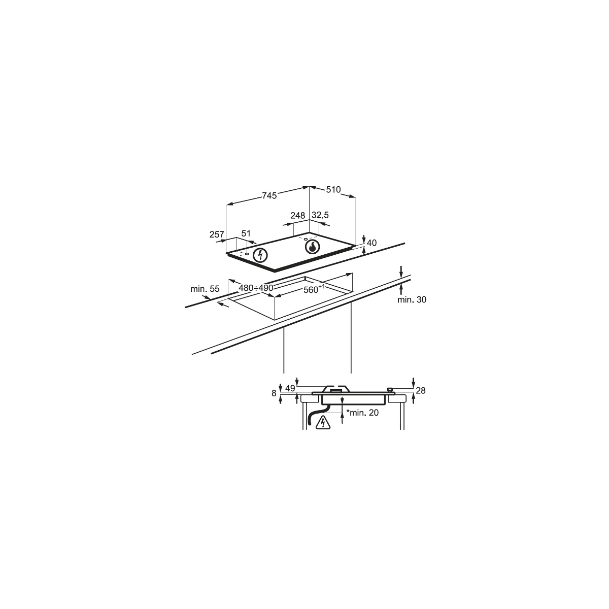 - Potenza sviluppata dalla zona cottura posteriore dx(W) / Dimensione della zona cottura: 3000W/70mm