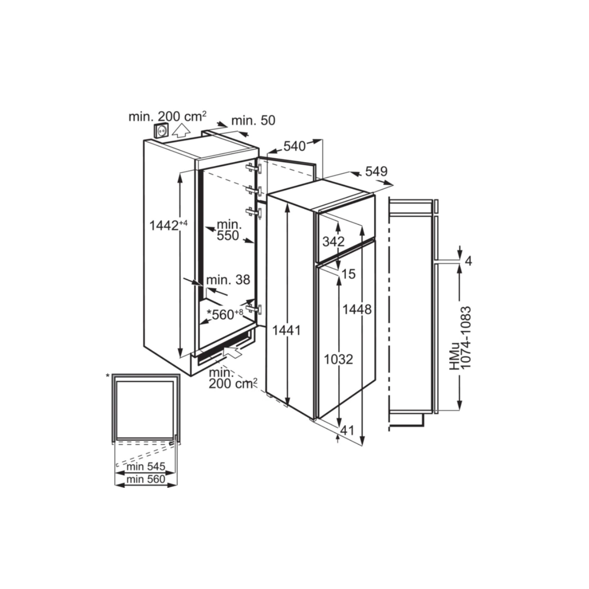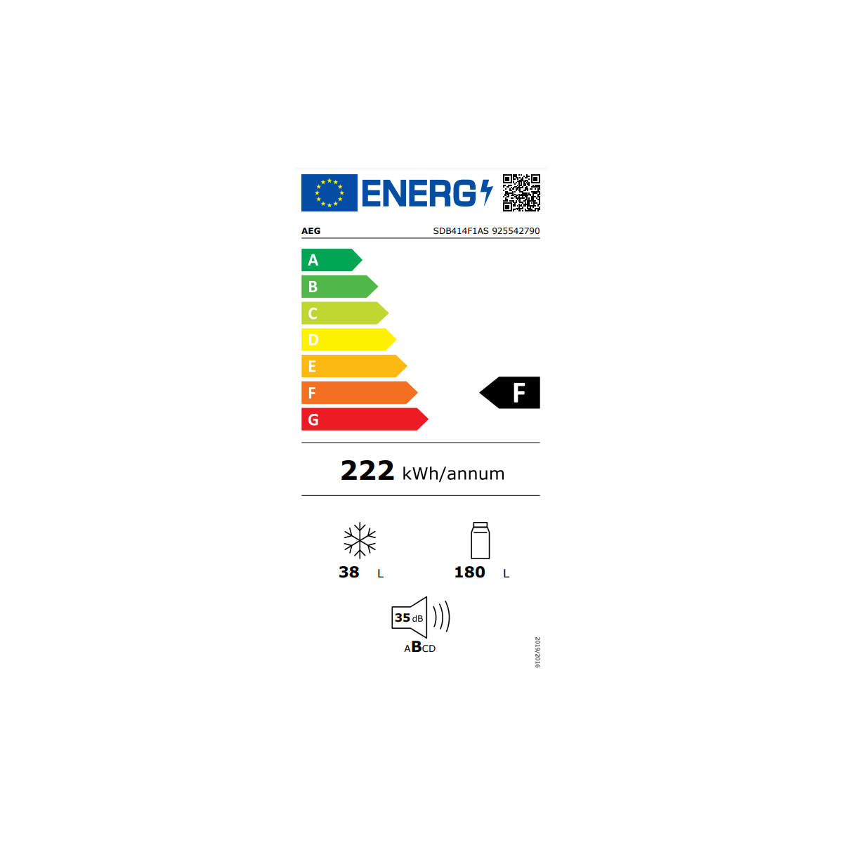 Aeg SDB414F1AS - Frigorifero Doppia Porta ad Incasso, h 144 cm, Capacità 218 Lt, Classe Energetica F, Bianco
