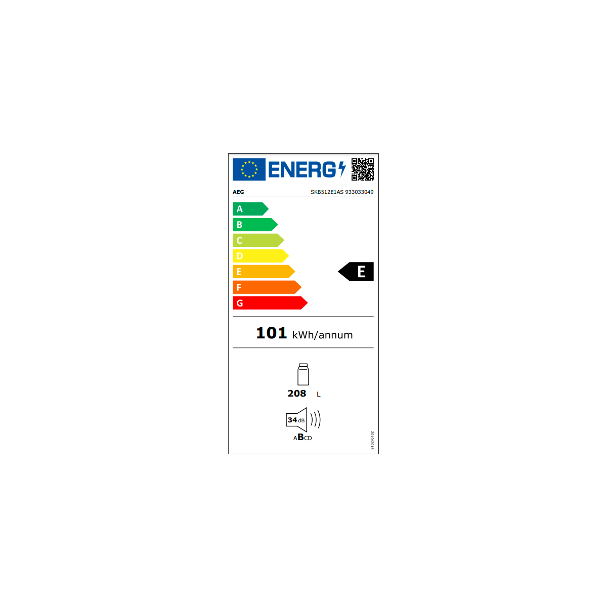 - Consumo medio annuale di energia in chilowattora per anno (kWh/a) (Regolamento (UE) 2017/1369): 101