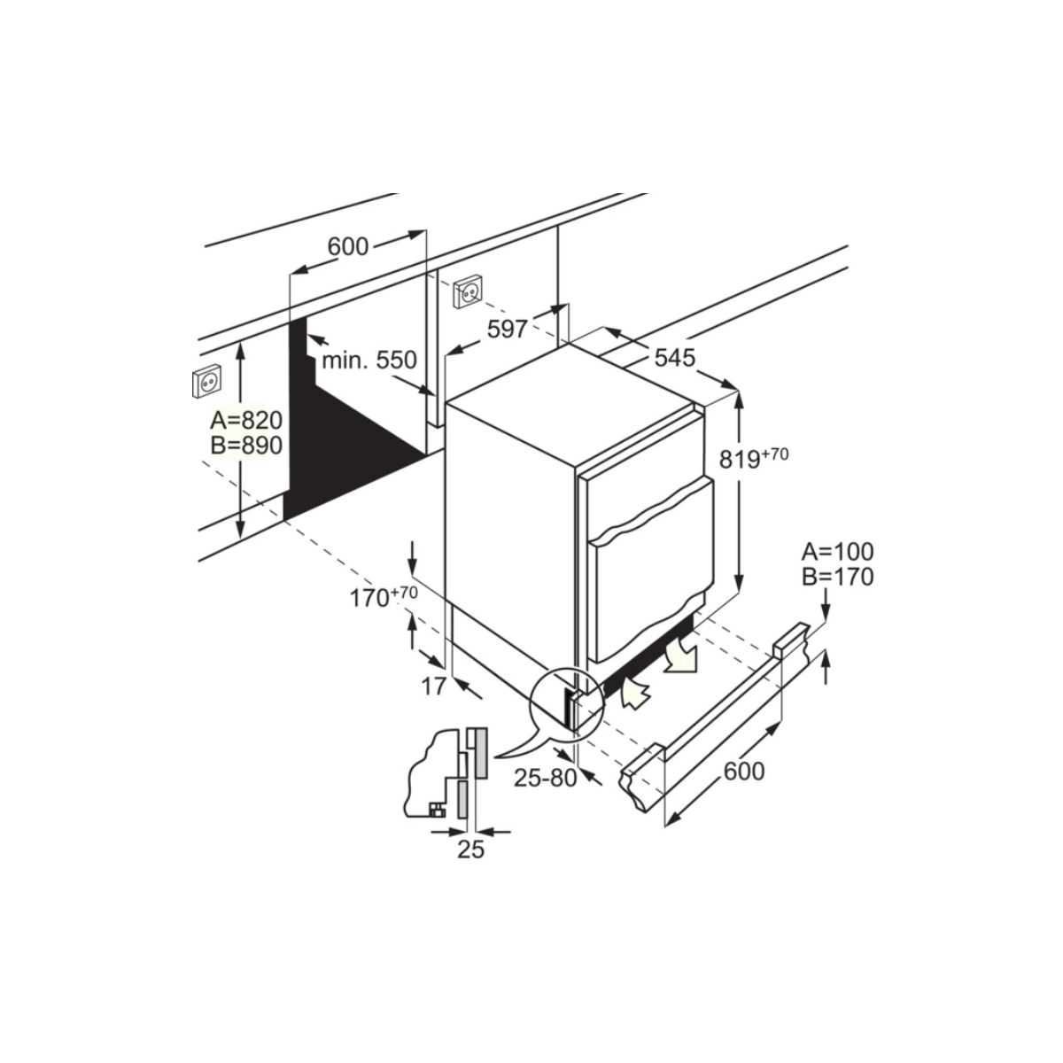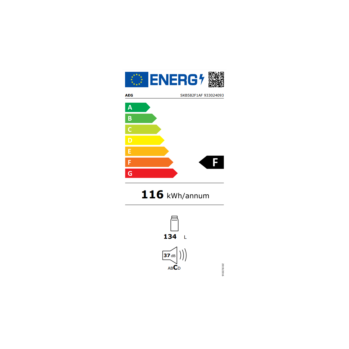 Aeg SKB582F1AF - Frigorifero Sottotavolo ad Incasso, h 82 cm, Capacità 134 Lt, Bianco, Classe F