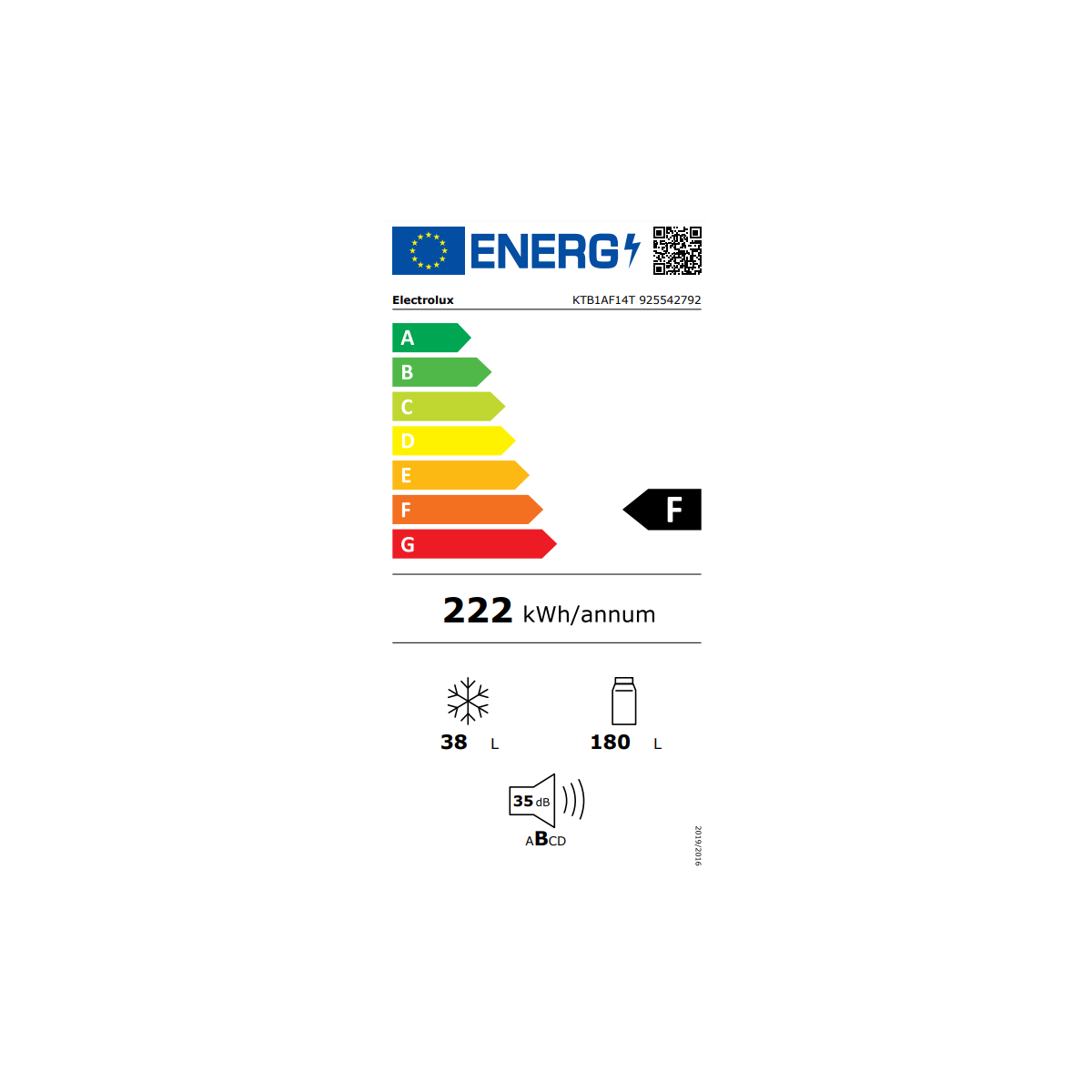 - Consumo medio annuale di energia in chilowattora per anno (kWh/a) (Regolamento (UE) 2017/1369): 222