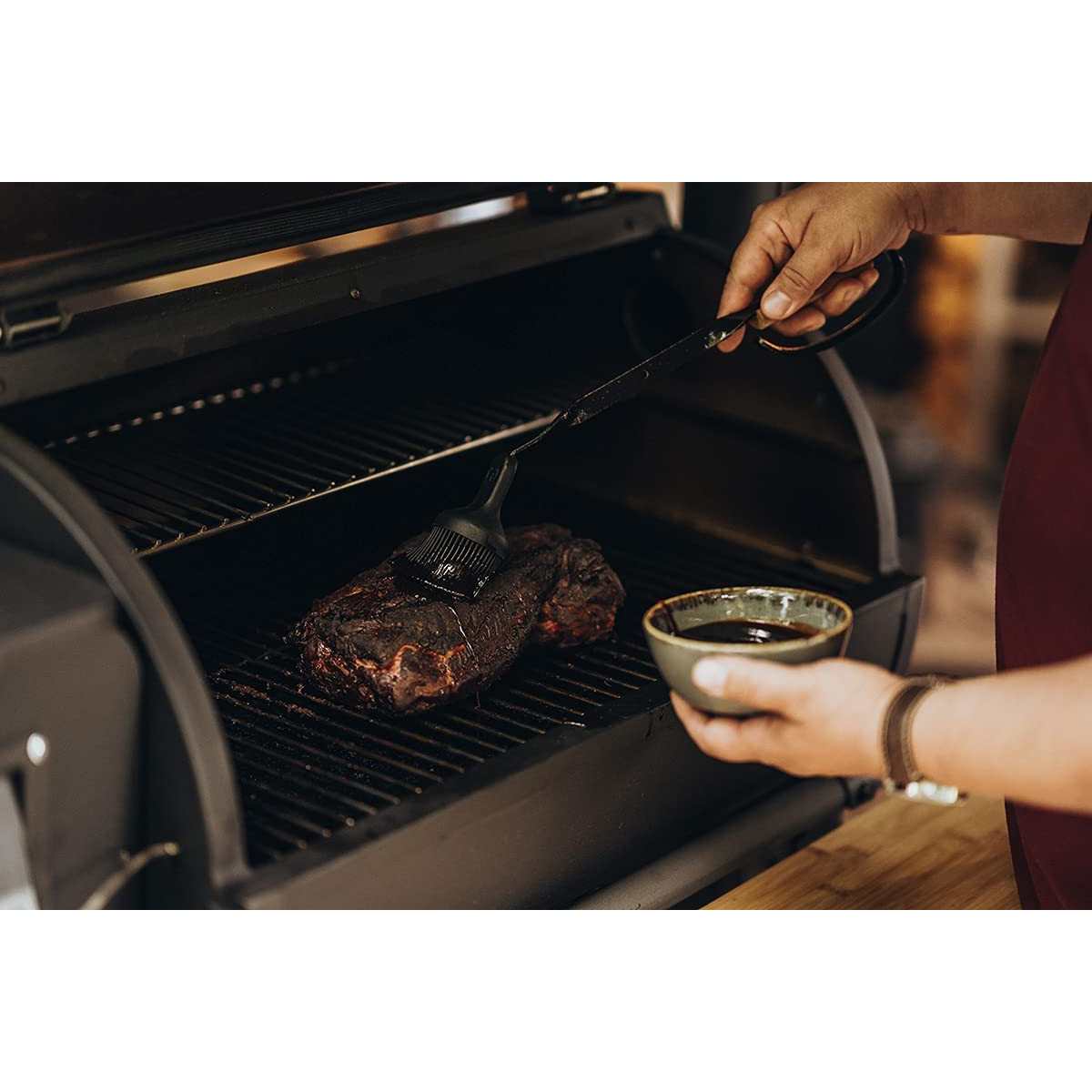 È finalmente arrivato: il nostro pennello per marinata. Non solo condivide l'aspetto accattivante con le pinze V-Tong, ma anche la maneggevolezza con soli 300 g.