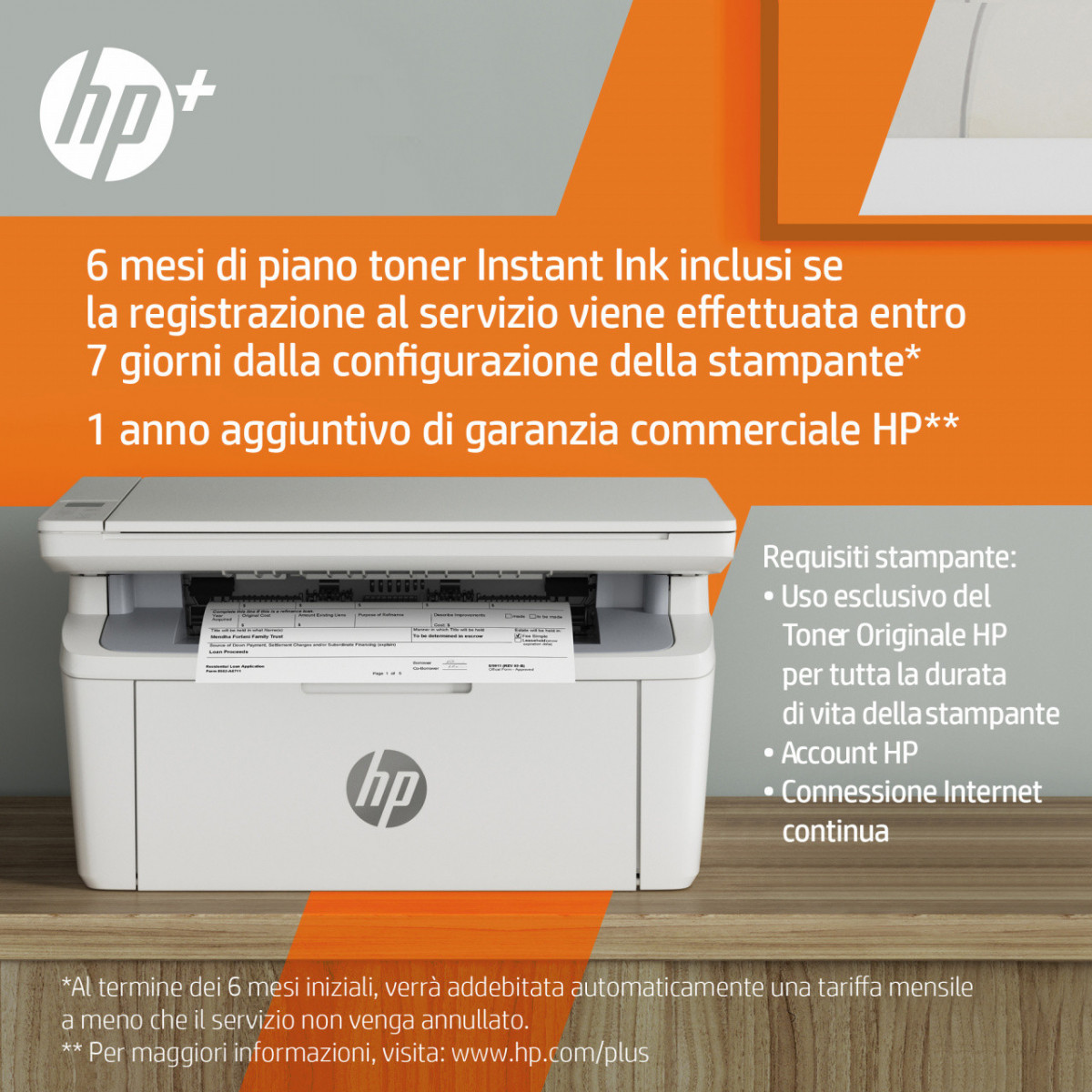 La stampante laser multifunzione più piccola della sua categoria[1] è progettata per la massima efficienza, consente elevate velocità di stampa ed è compatibile con soluzioni per la stampa da mobile.[2] Include HP+, la soluzione di stampa smart con connettività cloud che vi consente di stampare in qualsiasi momento, ovunque vi troviate.[2]