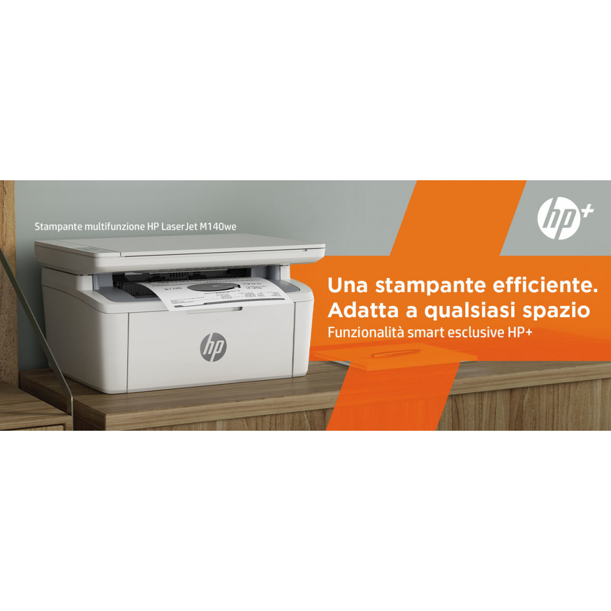 HP LaserJet M140we. Tecnologia di stampa: Laser, Stampa: Mono stampa, Risoluzione massima: 600 x 600 DPI. Copia: Mono copia, Risoluzione di copia massima: 600 x 400 DPI. Scansione: Scansione a colori, Risoluzione di scansione ottica: 600 x 600 DPI. Massimo formato carta serie ISO A: A4. Wi-Fi. Stampa diretta. Colore del prodotto: Bianco