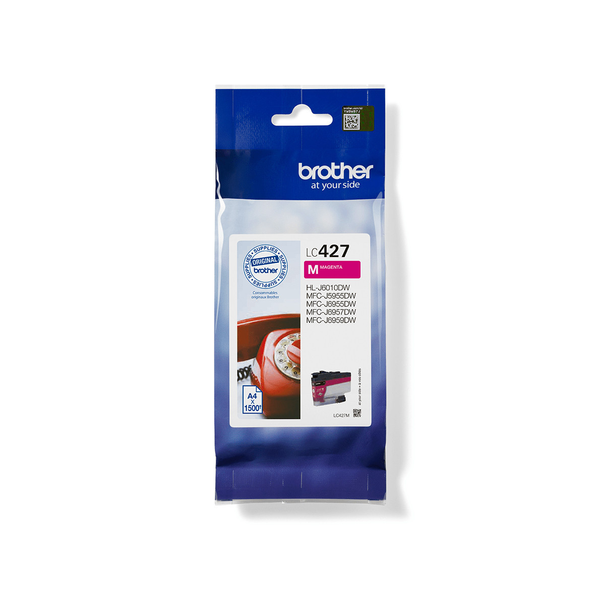 Brother LC-427M. Tipo di inchiostro a colori: Inchiostro a base di pigmento, Tipo di cartuccia: Resa standard, Tipo di fornitura: Confezione singola, Resa in pagine dell'inchiostro a colori: 1500 pagine, Quantità per pacco: 1 pz