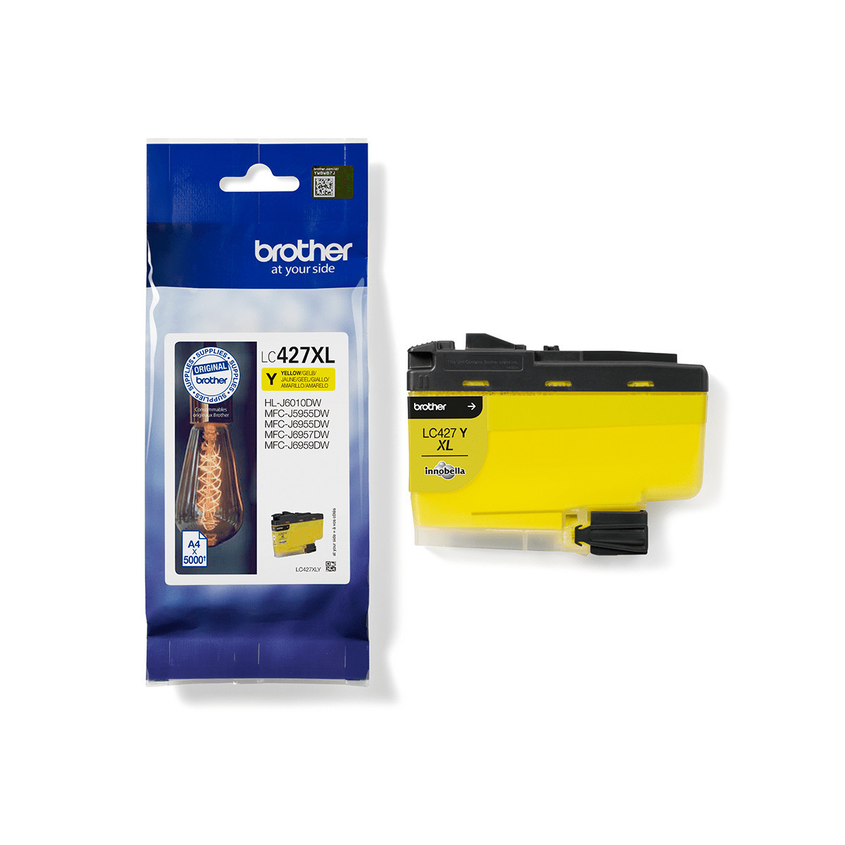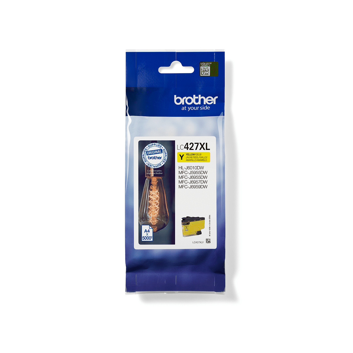 Brother LC-427XLY. Tipo di inchiostro a colori: Inchiostro a base di pigmento, Tipo di cartuccia: Resa elevata (XL), Tipo di fornitura: Confezione singola, Resa in pagine dell'inchiostro a colori: 5000 pagine, Quantità per pacco: 1 pz