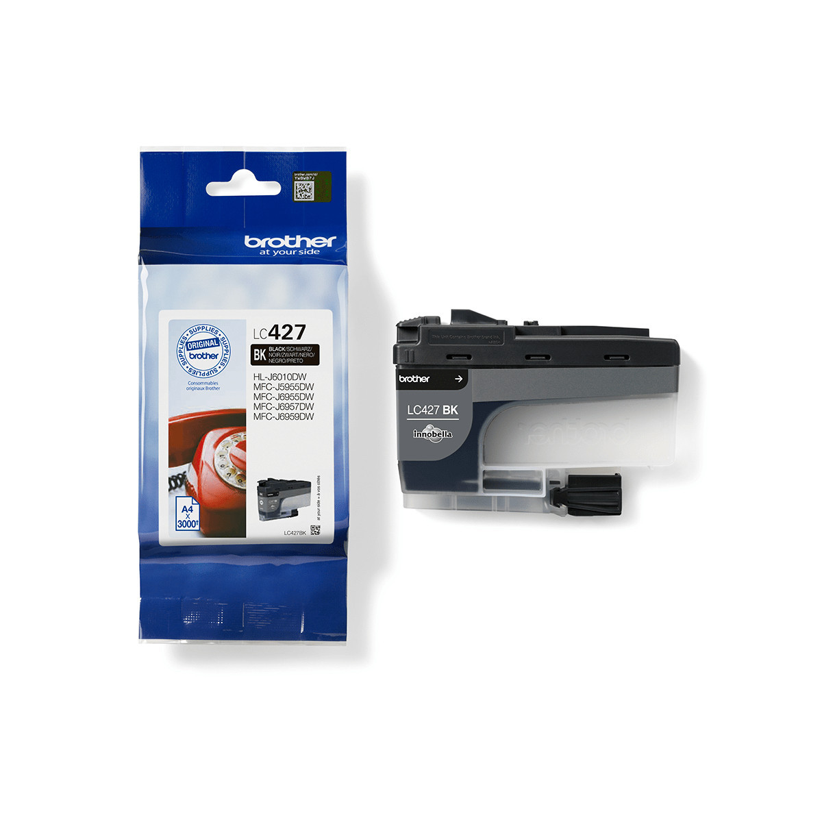 Brother LC-427BK. Tipo di inchiostro nero: Inchiostro a base di pigmento, Tipo di cartuccia: Resa standard, Tipo di fornitura: Confezione singola, Quantità per pacco: 1 pz, Resa in pagine dell'inchiostro a colori: 3000 pagine