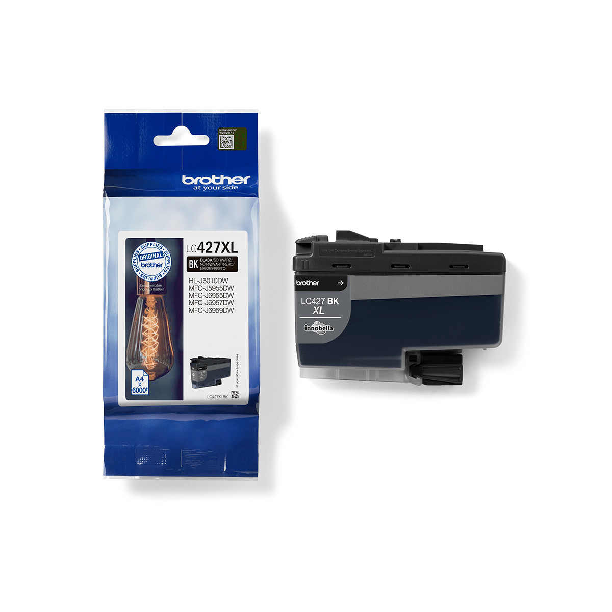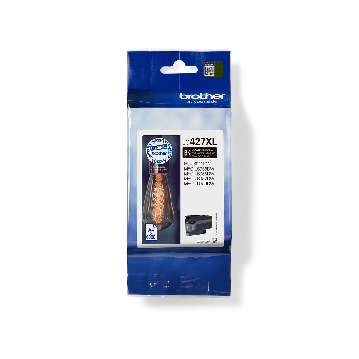 Brother LC-427XLBK. Tipo di cartuccia: Resa elevata (XL), Tipo di inchiostro nero: Inchiostro a base di pigmento, Tipo di fornitura: Confezione singola, Quantità per pacco: 1 pz, Resa in pagine dell'inchiostro a colori: 6000 pagine