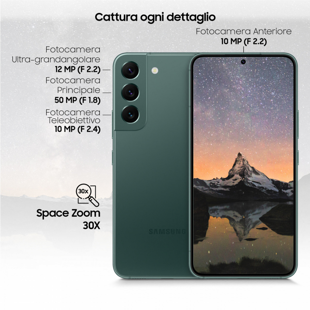 Samsung Galaxy S22 5G Display 6.1'' Dynamic AMOLED 2X, 4 fotocamere, RAM 8 GB, 128 GB, 3.700mAh, Green