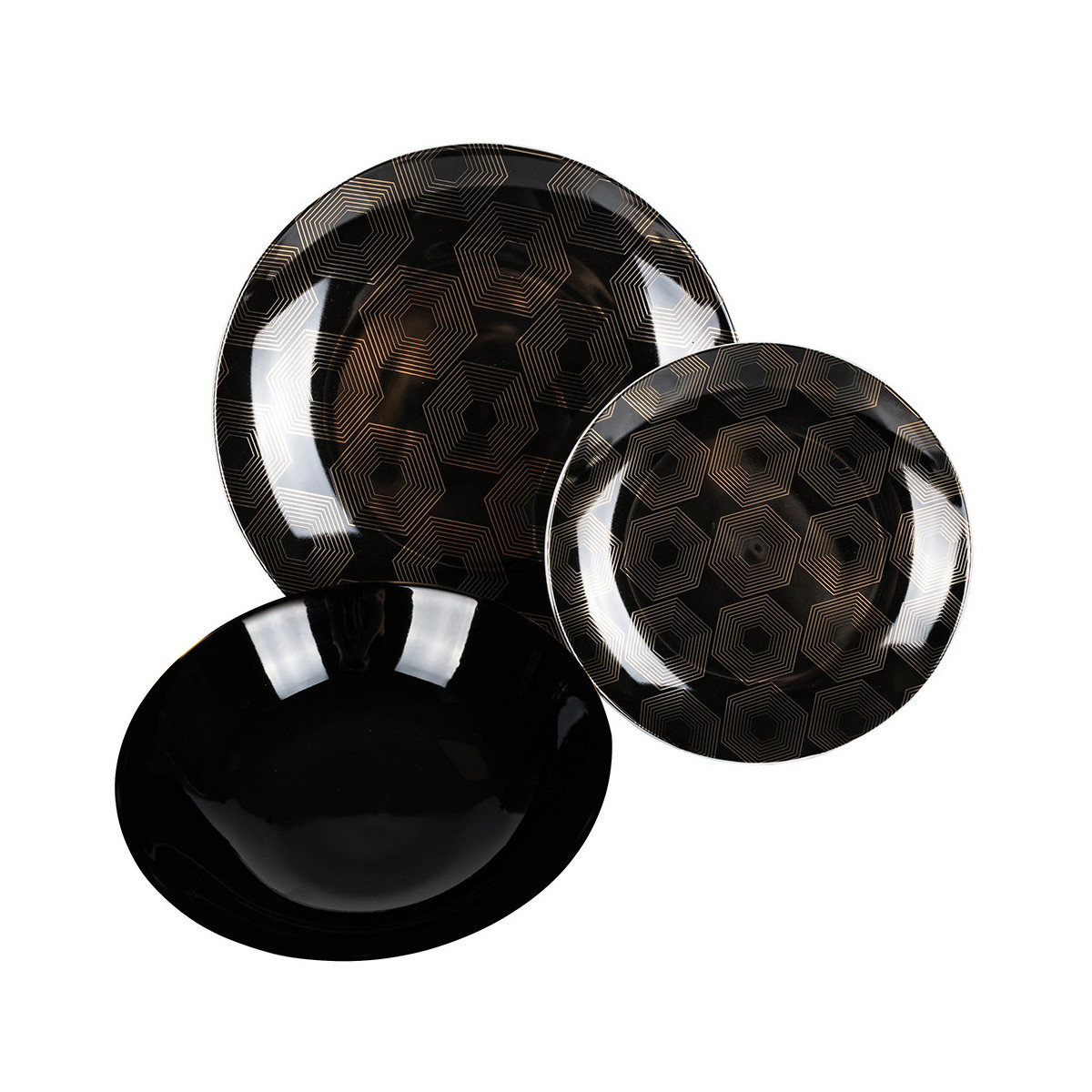 Linee sottili ma decise, bordi definiti e decori geometrici coinvolgono i commensali in una mise en place di grande stile. Inoltre, la porcellana e il gres offrono al servizio un valore aggiunto che mette in risalto, grazie alla lucidità delle superfici, ogni singola fattezza degli scomposti.