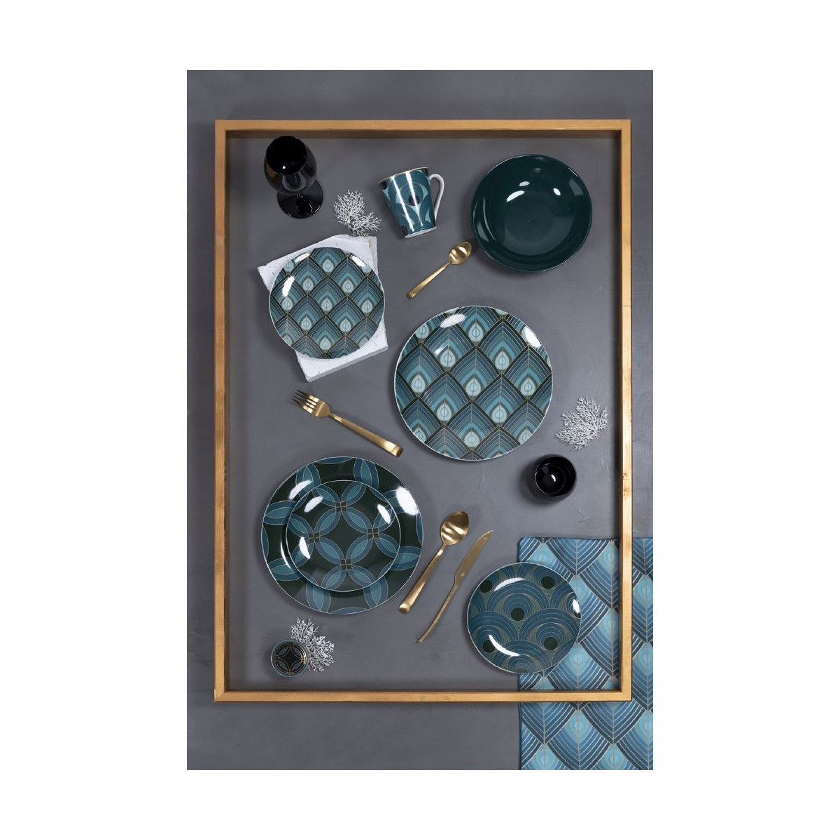 Chiudete gli occhi e immaginate di toccare la seta: lucente, liscia e morbida. Ora immaginate di combinare un elegantissimo decoro che rimanda al raffinato piumaggio di pavone. Poi soffermatevi sui dettagli, su quei particolari che nel loro piccolo creano un insieme elegante e raffinato, caratterizzato da sottili ma decise venature dorate.