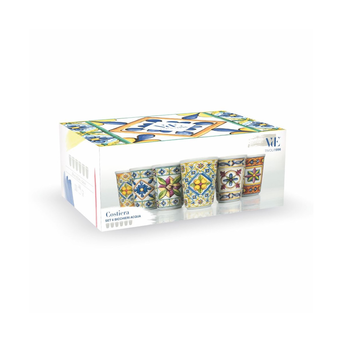 Villa D'Este Home Tivoli 'Costiera', Set 6 bicchieri acqua in ceramica 340 ml