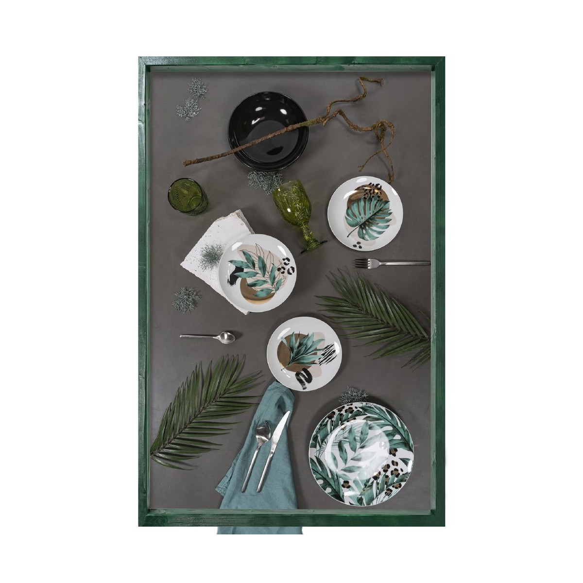 Lo stile jungle è l'alternativa perfetta per creare un piccolo spazio verde sulla tua mise en place, un'oasi incantevole arricchita da un tocco di selvaggio animalier.