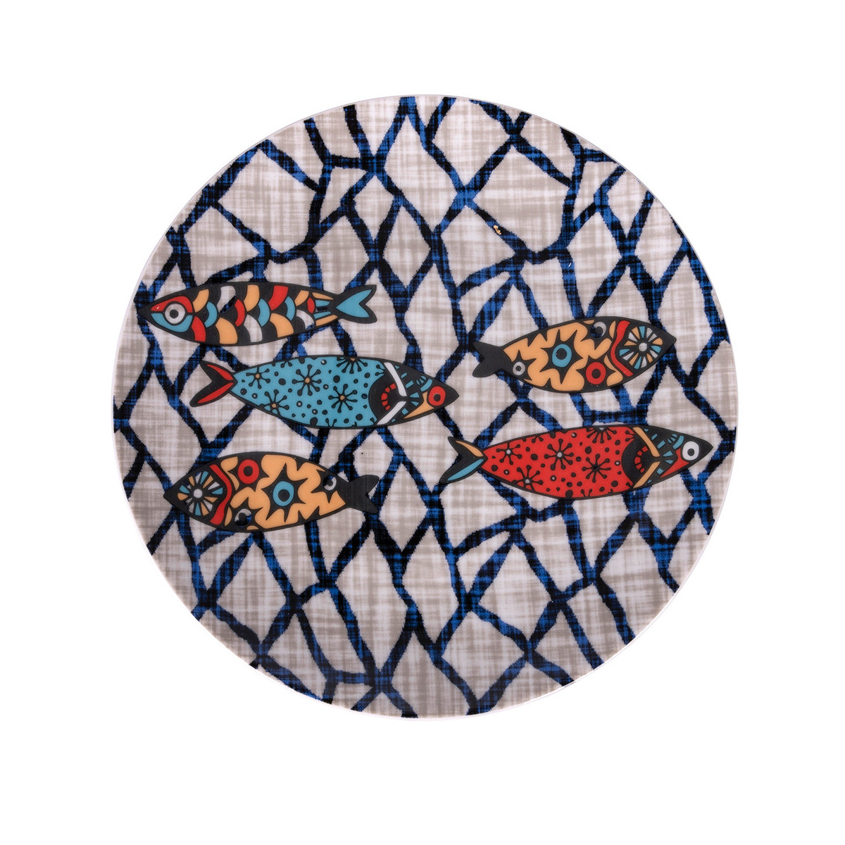 di questa collezione. Le cromie dei decori risaltano al massimo sul fondo bianco dall'effetto screpolato, dando vita ad un contrasto che diventa quasi magnetico.