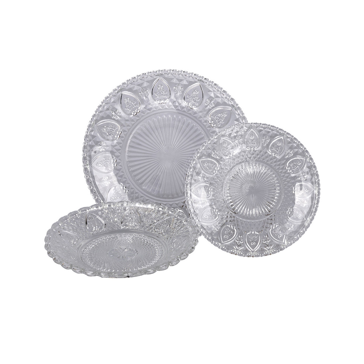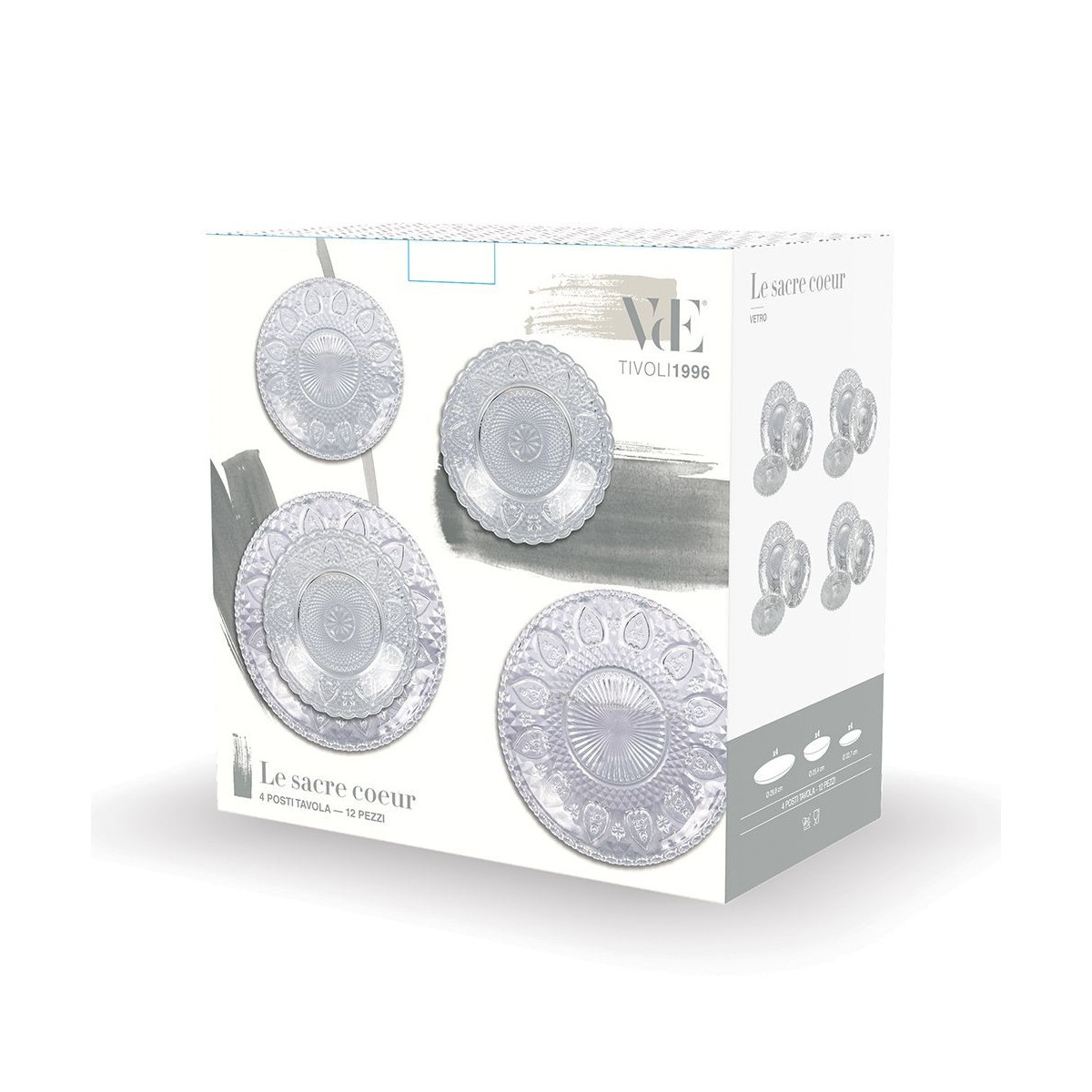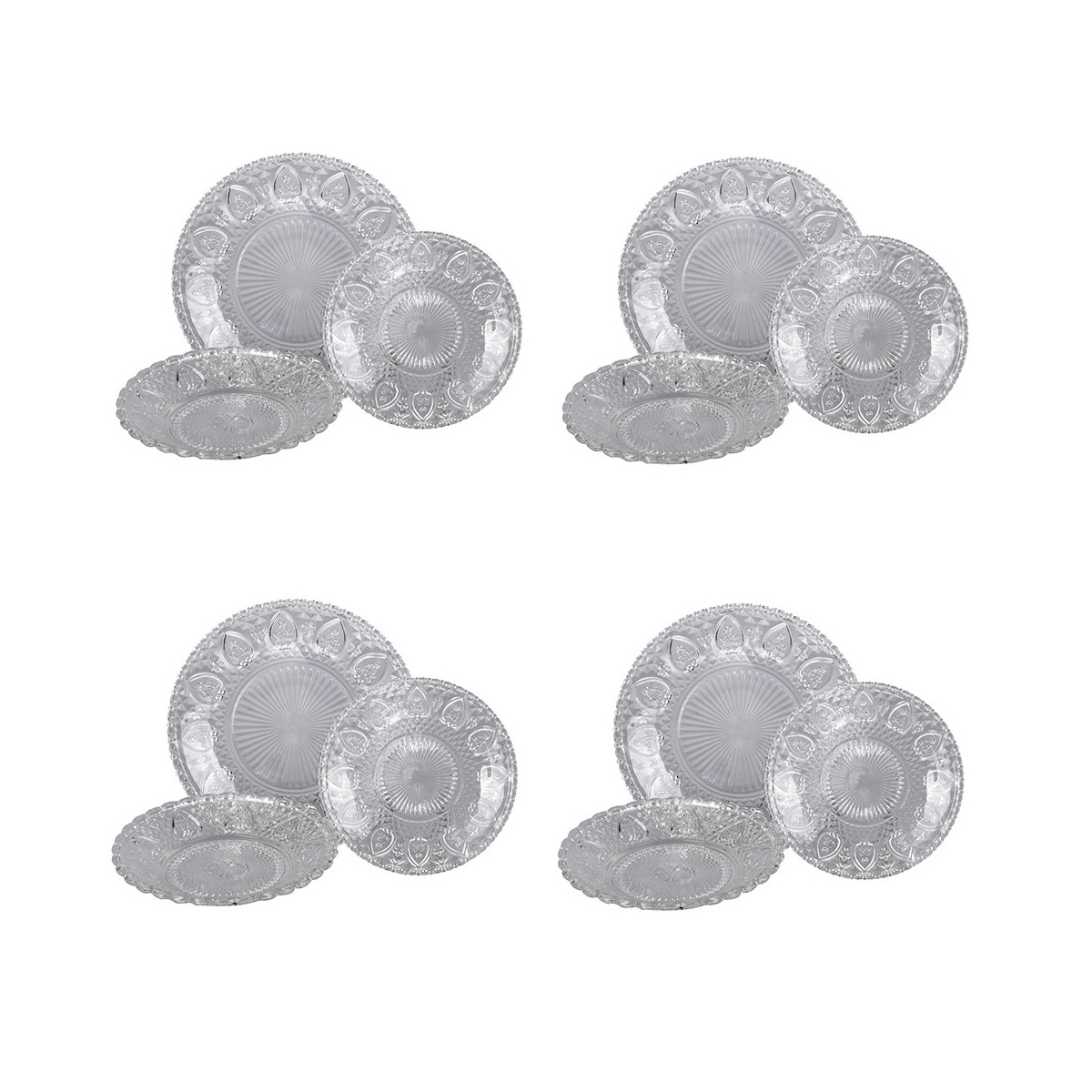 Servizio tavola 12 pezzi, realizzato in vetro