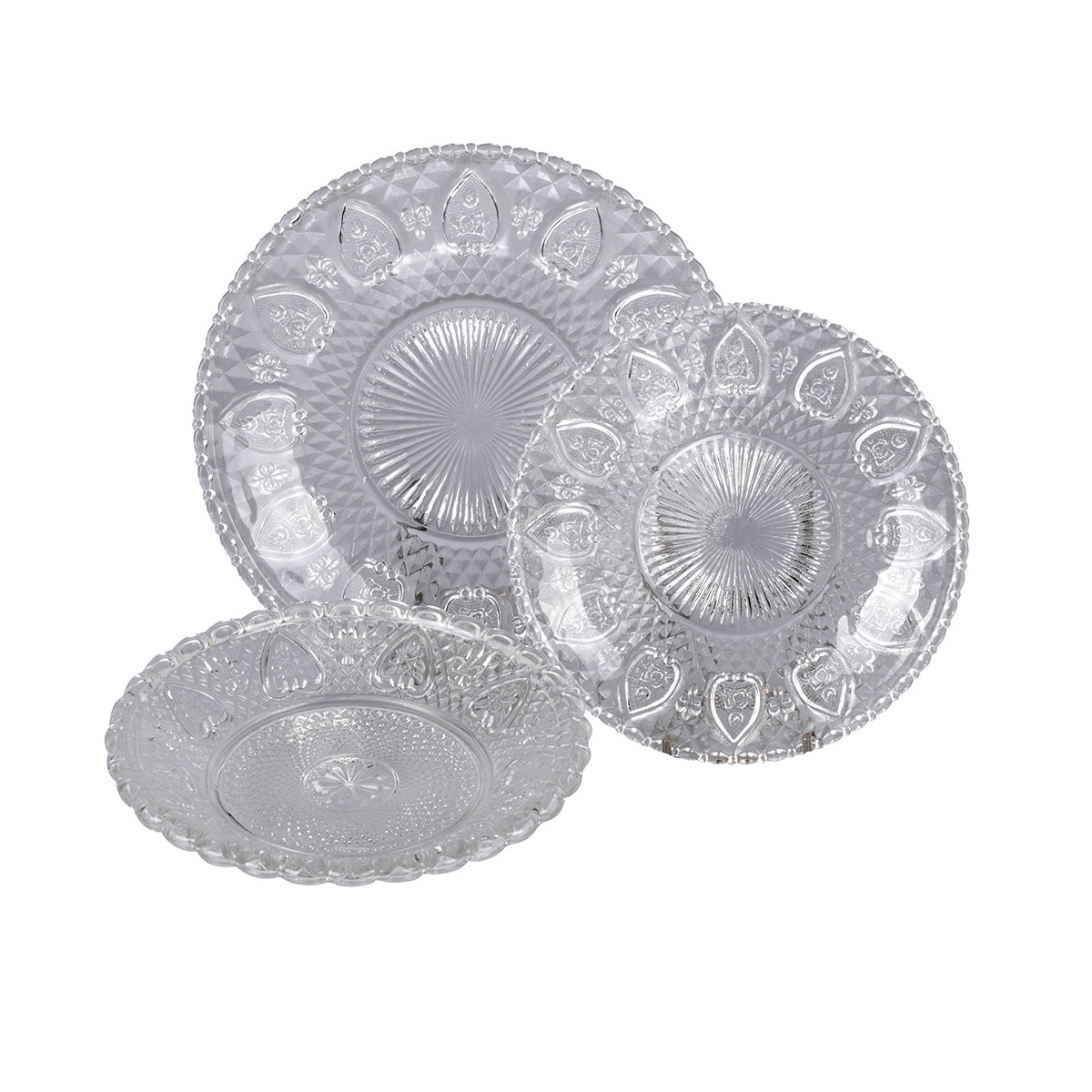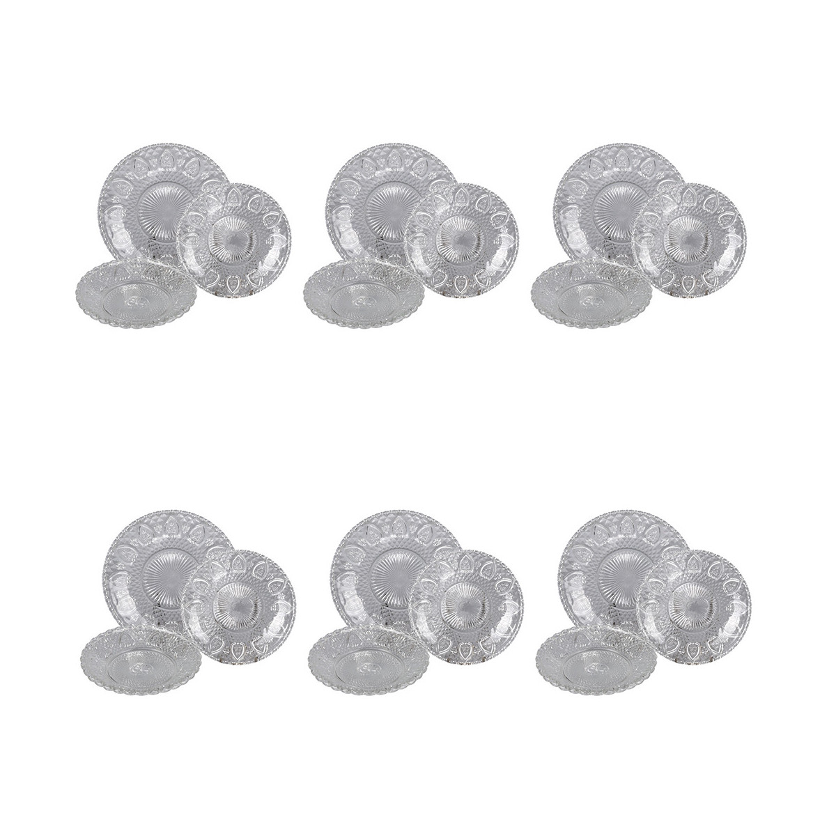 Servizio tavola 18 pezzi, realizzato in vetro