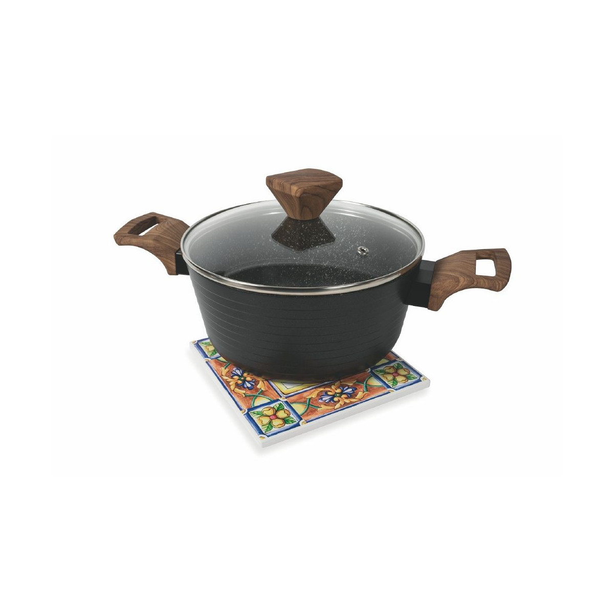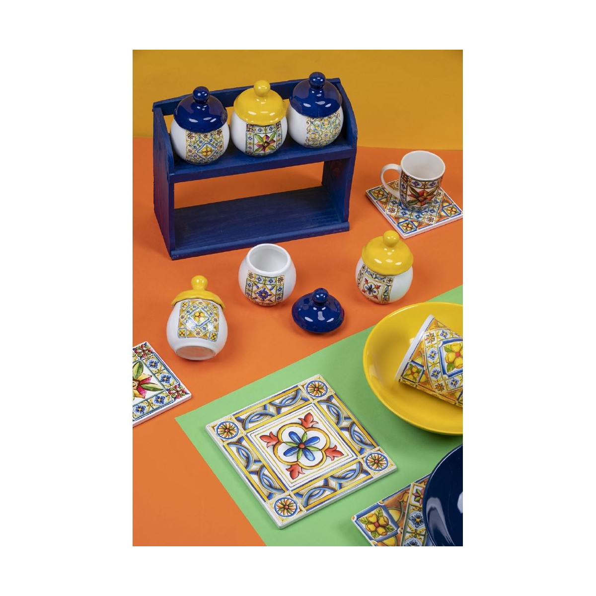 Realizzati in forme originali, arricchiti da fantasie geometriche e astratte, sempre coloratissime, arrivano fino alla tavola e si fanno notare immediatamente, mentre il fondo in sughero termoisolante protegge le superfici dal calore.