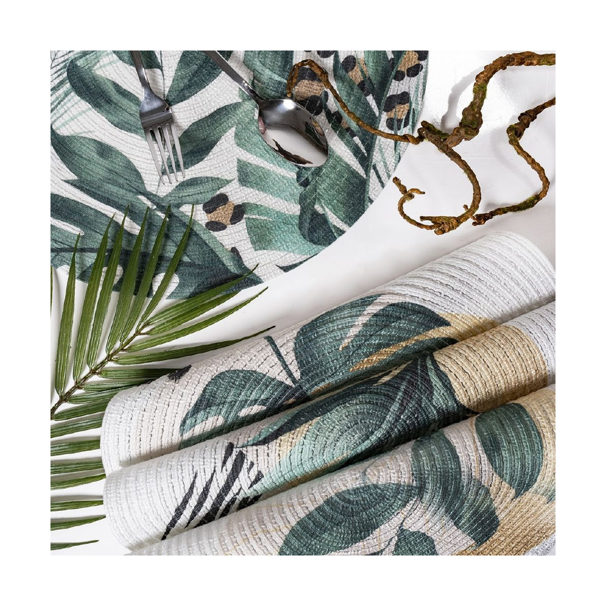 Le tovagliette riproducono le affascinanti venature delle foglie, portandoci in una dimensione naturale e contemporanea.