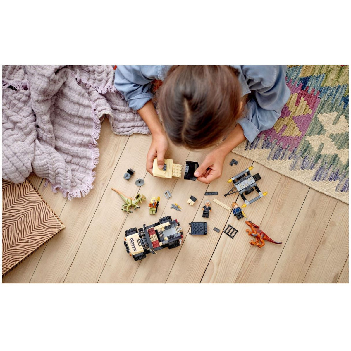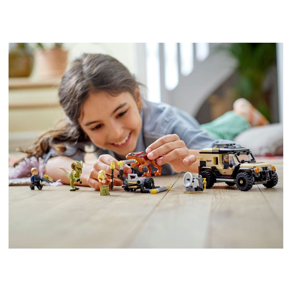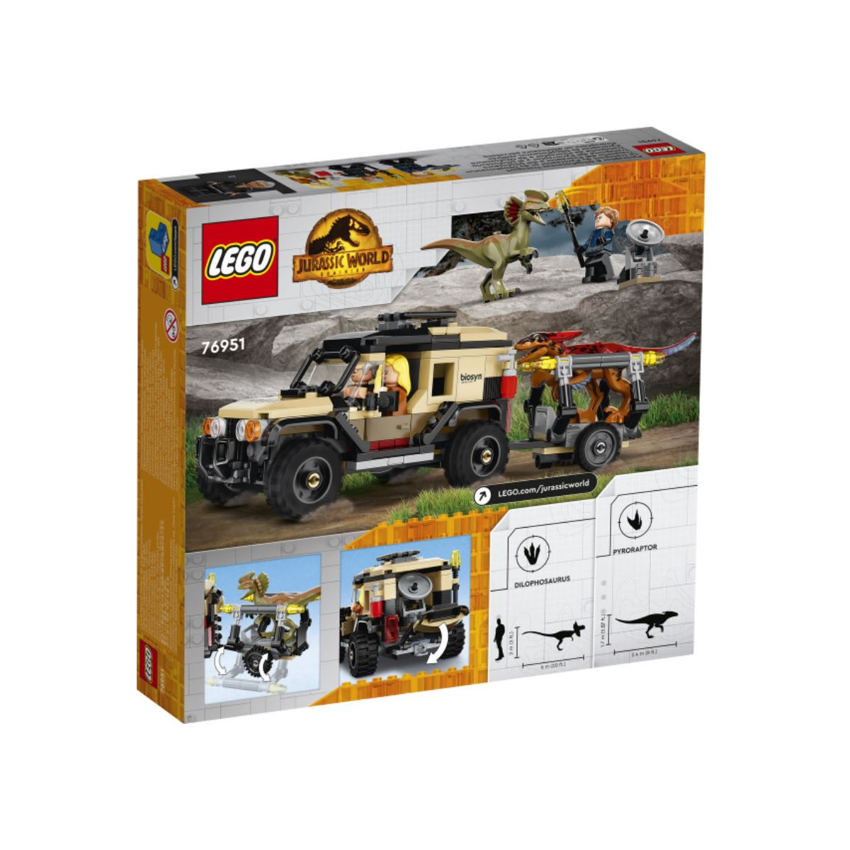 Il fuoristrada LEGO ha posto per 2 minifigure, è dotato di un localizzatore di dinosauri rimovibile e di una gabbia con apertura su un rimorchio che può contenere un dinosauro. I bambini che amano i veicoli speciali e i dinosauri di Jurassic World possono creare tante storie originali. Sono incluse le istruzioni passo passo per facilitare la costruzione ai più piccoli, che potranno divertirsi in maniera indipendente.