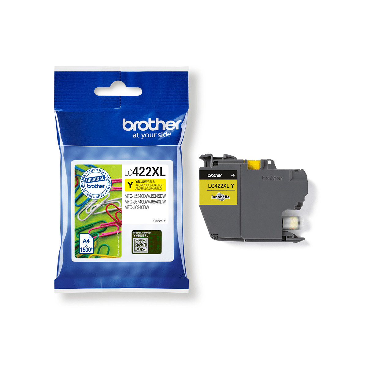 Brother LC-422XLY. Tipo di fornitura: Confezione singola, Resa in pagine dell'inchiostro a colori: 1500 pagine, Quantità per pacco: 1 pz