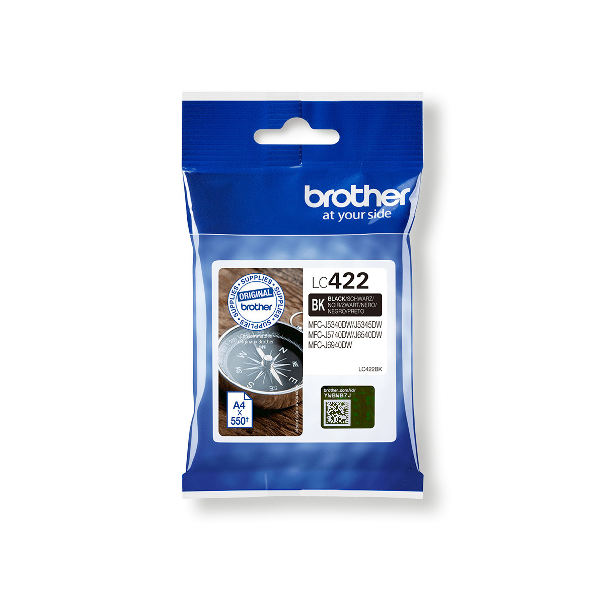 Brother LC-422BK. Tipo di fornitura: Confezione singola, Quantità per pacco: 1 pz, Resa in pagine dell'inchiostro a colori: 550 pagine