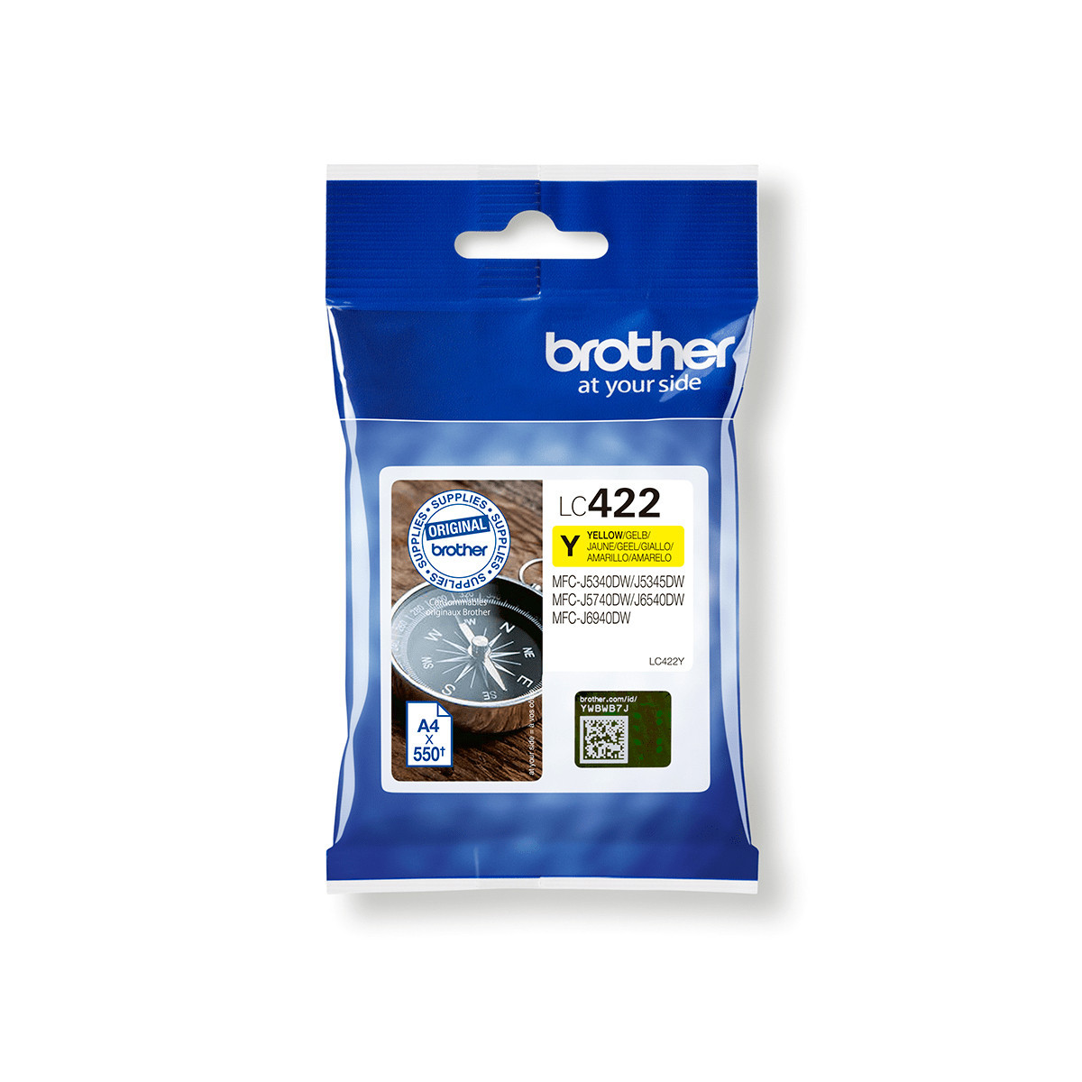 Brother LC-422Y. Tipo di fornitura: Confezione singola, Resa in pagine dell'inchiostro a colori: 550 pagine, Quantità per pacco: 1 pz