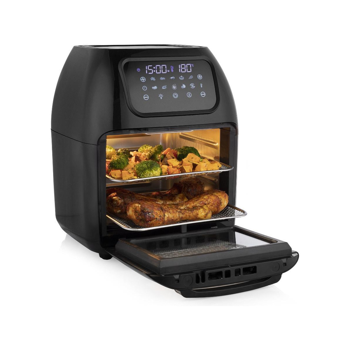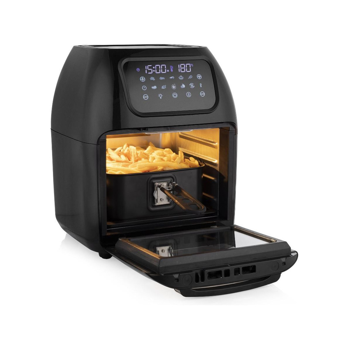 Preparare patatine fritte, verdure, torte e pane è facilissimo con il forno e friggitrice Multi Crispy. Utilizzando una delle 10 impostazioni preprogrammate si ottengono sempre i risultati migliori. Inoltre è dotato di un cestello per friggere, 2 griglie, un manico e un vassoio per le briciole.