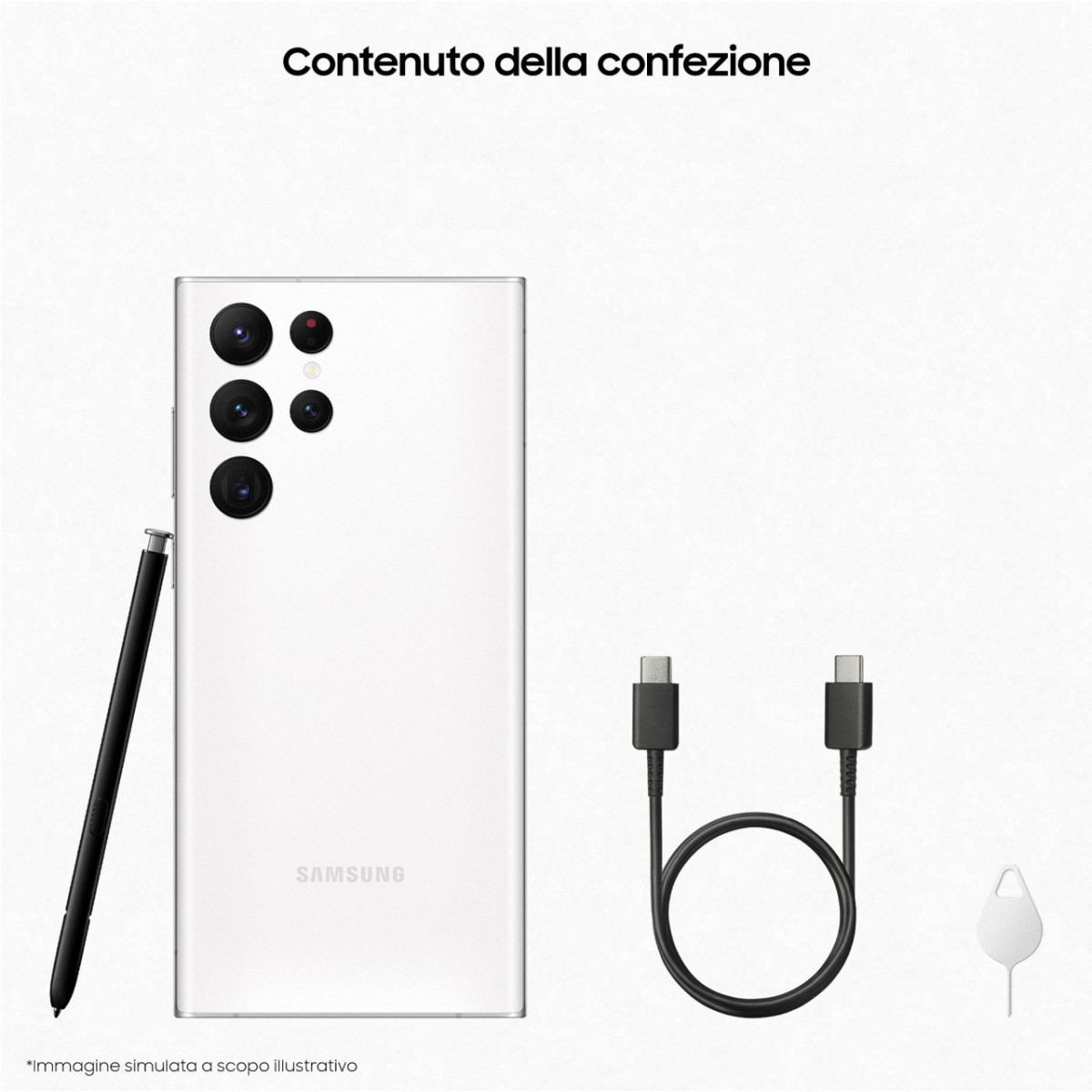 Samsung Galaxy S22 Ultra 5G Display 6.8'' Dynamic AMOLED 2X, 5 fotocamere, RAM 12 GB, 256 GB, 5.000mAh, Phantom White. Dimensioni schermo: 17,3 cm (6.8"), Risoluzione del display: 3088 x 1440 Pixel, Tipo di display: Dynamic AMOLED 2X. Frequenza del processore: 2,8 GHz, Famiglia processore: Samsung Exynos, Modello del processore: 2200. Capacità della RAM: 12 GB, Capacità memoria interna: 256 GB. Risoluzione fotocamera posteriore (numerico): 108 MP, Tipo di fotocamera posteriore: Telecamera per quad. Capacità della scheda SIM: Doppia SIM. Sistema operativo incluso: Android 12. Capacità della batteria: 5000 mAh. Colore del prodotto: Bianco. Peso: 228 g