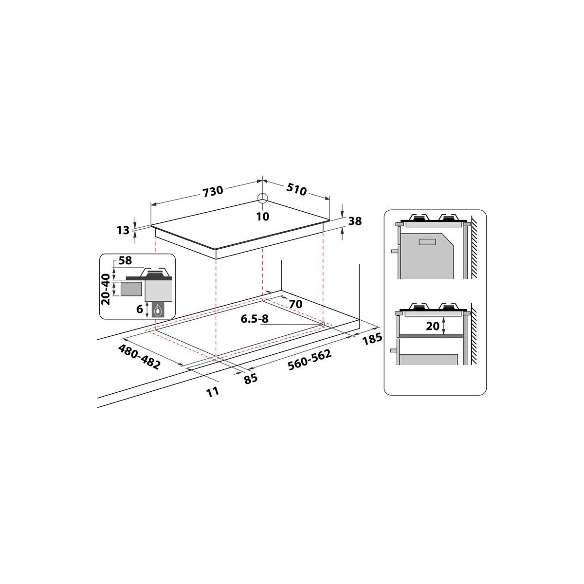| Dimensione della larghezza del piano cottura | 75 cm |